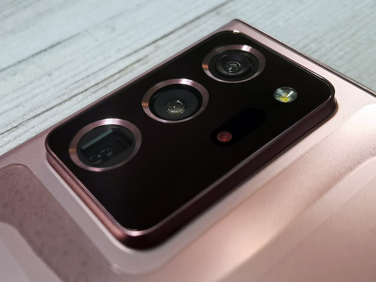 Samsung Galaxy Note 20 Ultra har samma huvudkamera och ultravidvinkel som Galaxy S20 Ultra. Men telefotoobjektivet har 5x zoom istället för 4x och en ny Laserfokus som förhoppningsvis avhjälper fokusproblemen som S20 upplevde.