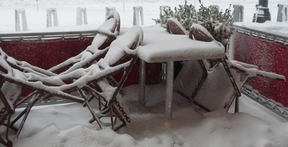 Vi åttasnåret har vi bokat bord på en av stadens bättre restauranger (med vita linnedukar, till och med). Uppklädda pulsar vi oss fram genom snömassorna (som nu närmar sig 50 cm) och ser fram emot en läcker femrätters med vinmeny. Men inte den här gången! Eller som den sympatiske dörrvakten säger: ”Sorry Sir, but we’re closed due to lack of staff.”