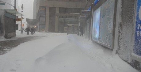 På Manhattan möts vi av vackert vinterväder: två minusgrader, lätta moln och nästan vindstilla. Men när vi avnjuter en iskall Sam Adams Winter Lager på en pub vid Times Square är nyheterna på (på en av de 79 TV-apparaterna som präglar varje amerikansk pub!) och en bekymrad reporter berättar att en enorm snöstorm ska drabba mitt i hjärtat av New York under natten och att tiotusentals flyg är inställda och att kaos ska råda på gatorna. ”Jaja, amerikanerna älskar att överdriva och att överdramatisera”, tänker vi.