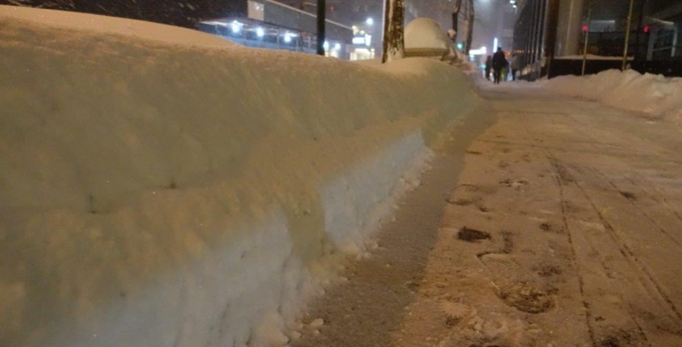 När dagen gryr väcks vi av en ylande vind som virvlar runt det (ännu så länge) lätta snöfallet och de höga skyskraporna och långa, raka gatorna fungerar som effektiva vindtunnlar som får blåsten att eskalera.