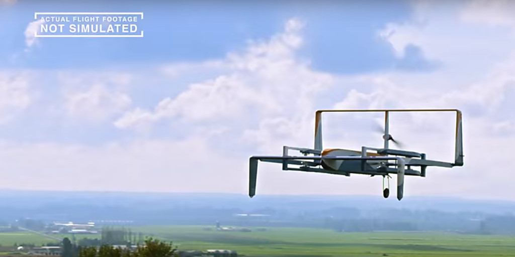 Amazon har en längre tid arbetat med sin Prime Air-tjänst, som ska leverera paket med små drönare. När tjänsten startas på allvar så ska man kunna få sin beställning levererad inom 30 minuter. Om man bor i närheten av något av Amazons lager, vill säga.