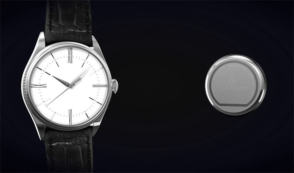 Chronos variant ser ut som ett stort knappbatteri och sätts fast på baksidan av klockan. Den passar de flesta armbandsur på minst 33 mm i diameter, vilket innebär att den också passar de flesta damur.
