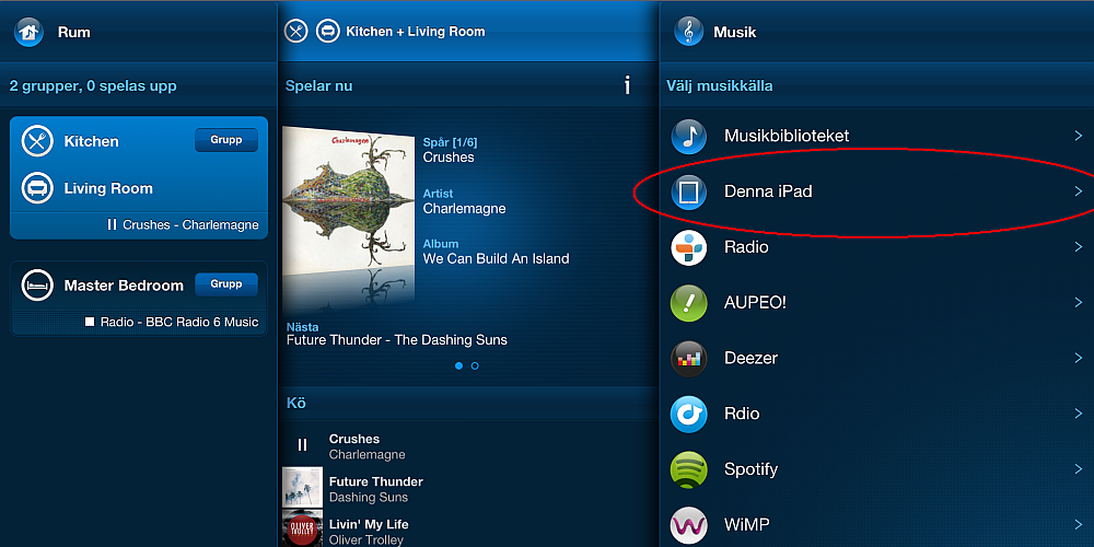 Det trådlösa musiksystemet Sonos är praktiskt om man vill ha musik i flera rum. Musiken kan man styra från datorn, från smartmobiler och surfplattor. Bland musikkällorna har bland annat funnits iTunes, Spotify och Wimp.