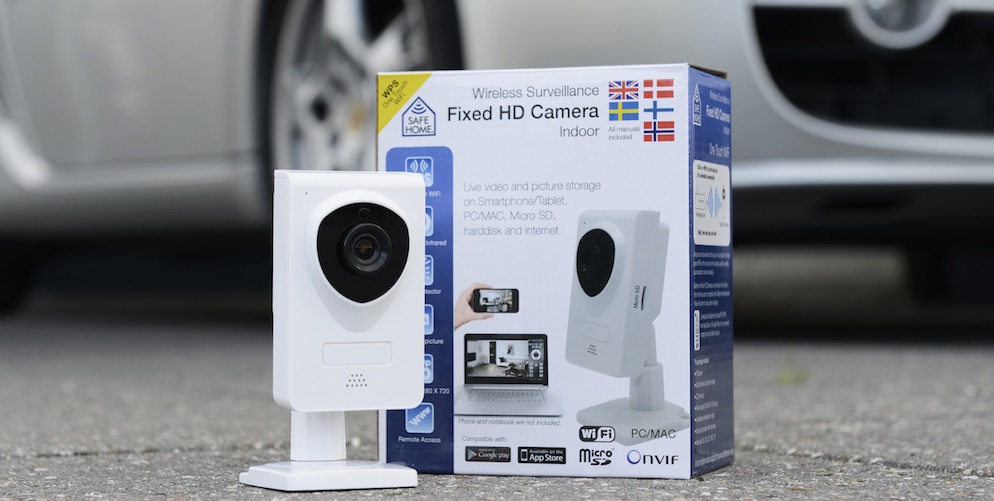 SafeHome P2 HD Camera Indoor Fixed är en liten HD-kamera som kopplas till wifi-hemnätverket. Tack vare WPS-funktionen trycker man bara på knappen på kameran och sedan på routern (kräver dock att den har WPS-funktion) så upprättas nätverksanslutningen automatiskt.