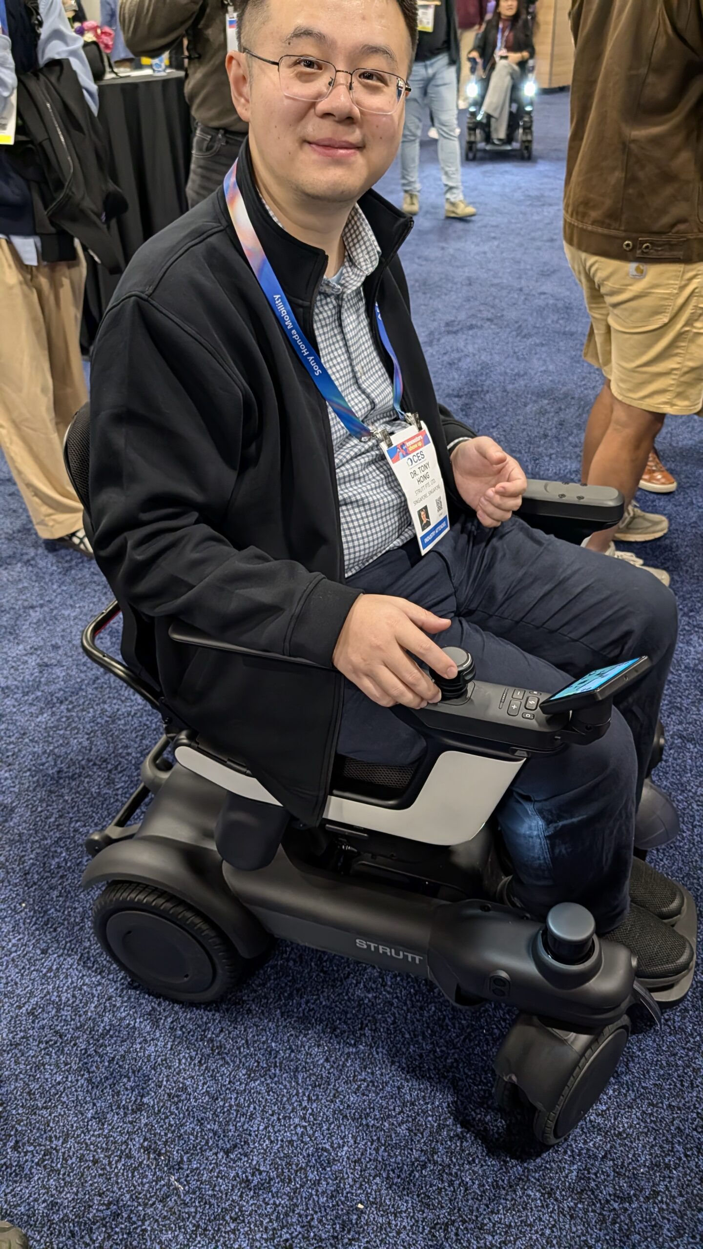 En av de upplevelser som bokstavligen lyfte stämningen var mötet med Hypershell. Vi fick möjlighet att prova deras exoskelettben, och det är en märklig känsla.