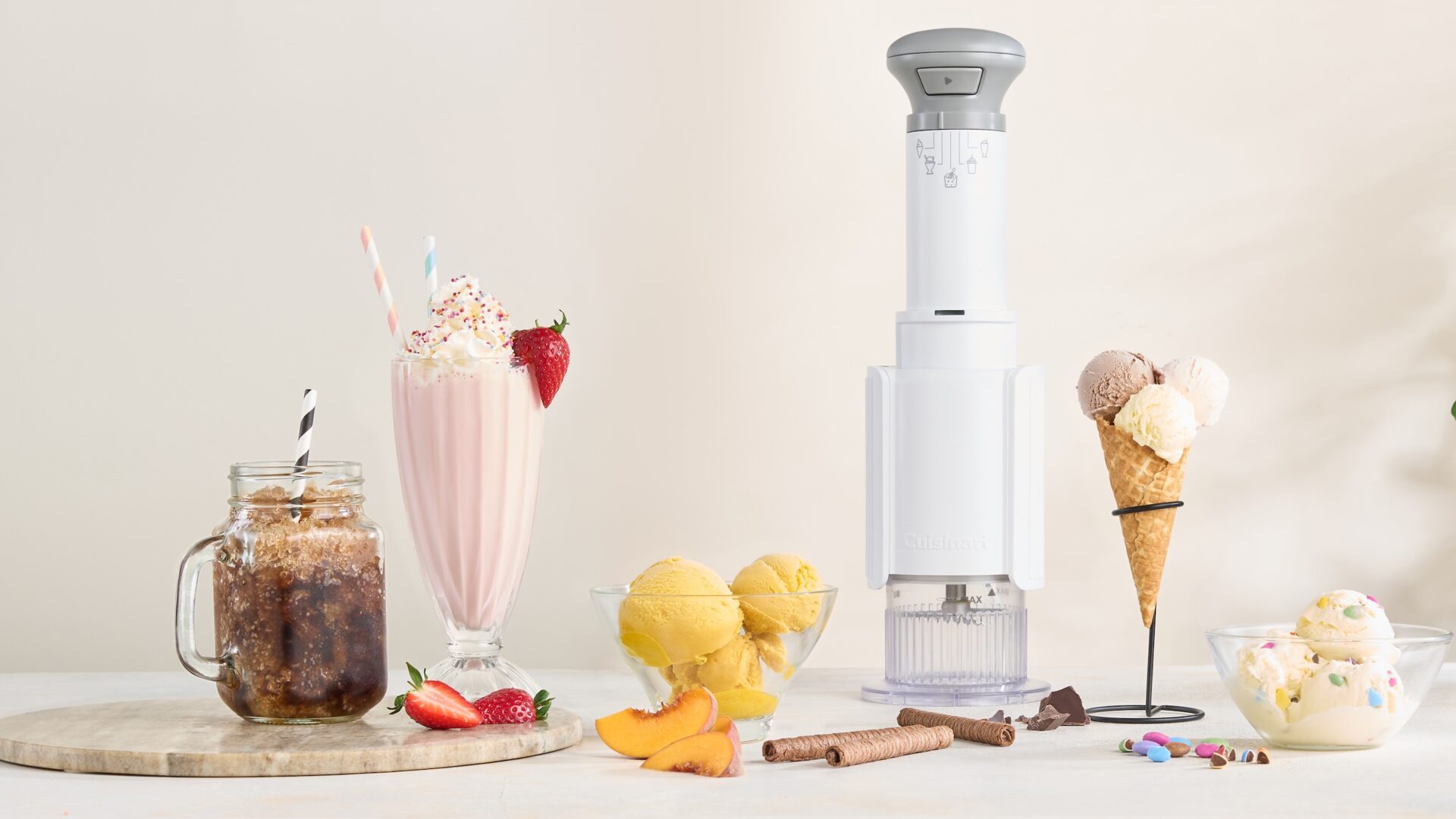Även om vädret just nu inte är så lockande så kan vi hoppas på högsommar framöver. Då finns det få saker som är så populärt som glass, läskande drycker och frysta cocktails. Även om du inte sitter på ett all-inclusive hotell utan befinner dig hemma kan du nu enkelt fixa det du är sugen på med de nya apparaterna från Cuisinart.