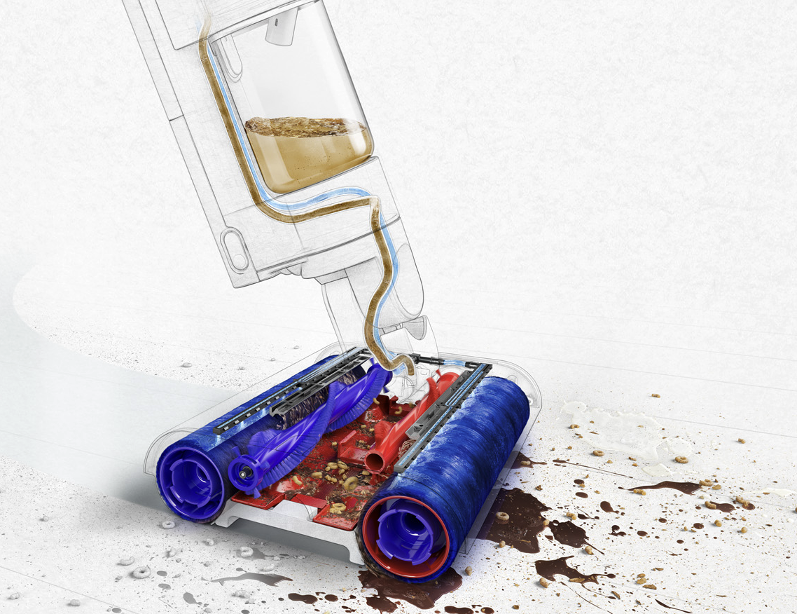 Prestandan för fläckborttagning beror på sambandet mellan golvens hydratisering och den tillämpade agitationen. Vi har konstruerat vår maskin så att ägarna har full kontroll, vilket möjliggör att de kan djuprengöra sina hem effektivt”, säger Charlie Park, VP för golvvård hos Dyson.