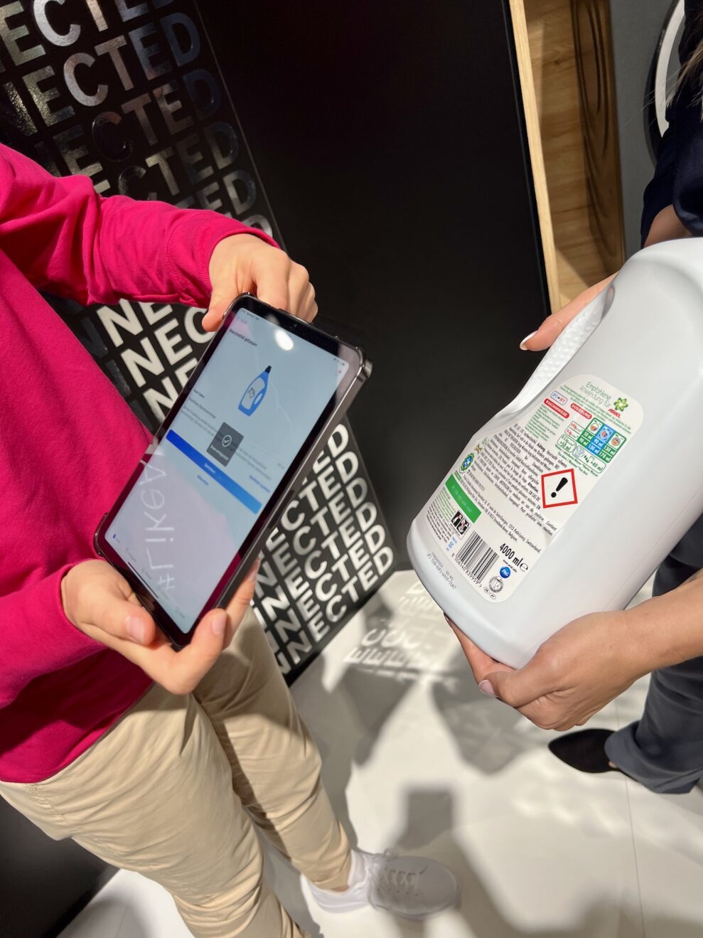 En ännu mer innovativ funktion är att man med hjälp av mobilkameran kan skanna etiketten på tvättmedlet. Därmed vet maskinen exakt sammansättningen på tvättmedlet och kan avgöra hur mycket som den automatiska doseringen ska tillsätta tvättvattnet. De allra flesta använder nämligen på tok för mycket tvättmedel, som sedan förorenar i onödan, samt att man behöver extra sköljningar för att få bort det ur kläderna.