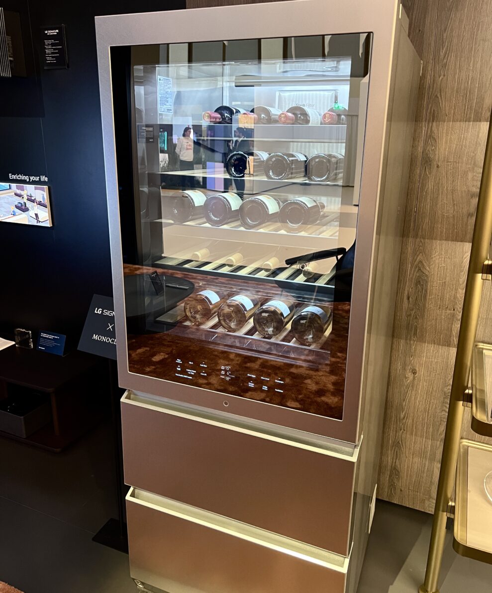 Har man ovanstående måste man så klart ha en uppkopplad vinkyl också. LG Signature Wine Cellar har både temperatur- och lutfuktighets-kontroll i tre zoner, samt att den är vibrationsfri. Dessutom två lådor med kyl och frys för andra drycker och tillbehör. Samt uppkoppling så klart.