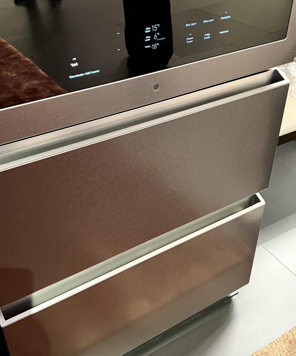 På plats fanns också den uppdaterade Signature kyl-frysen. Den har nu InstaView (att man kan se vad som finns i utan att öppna dörren) på båda dörrarna. Automatisk dörröppning, ismaskin och uppkoppling till LG ThinQ UP-appen så klart.