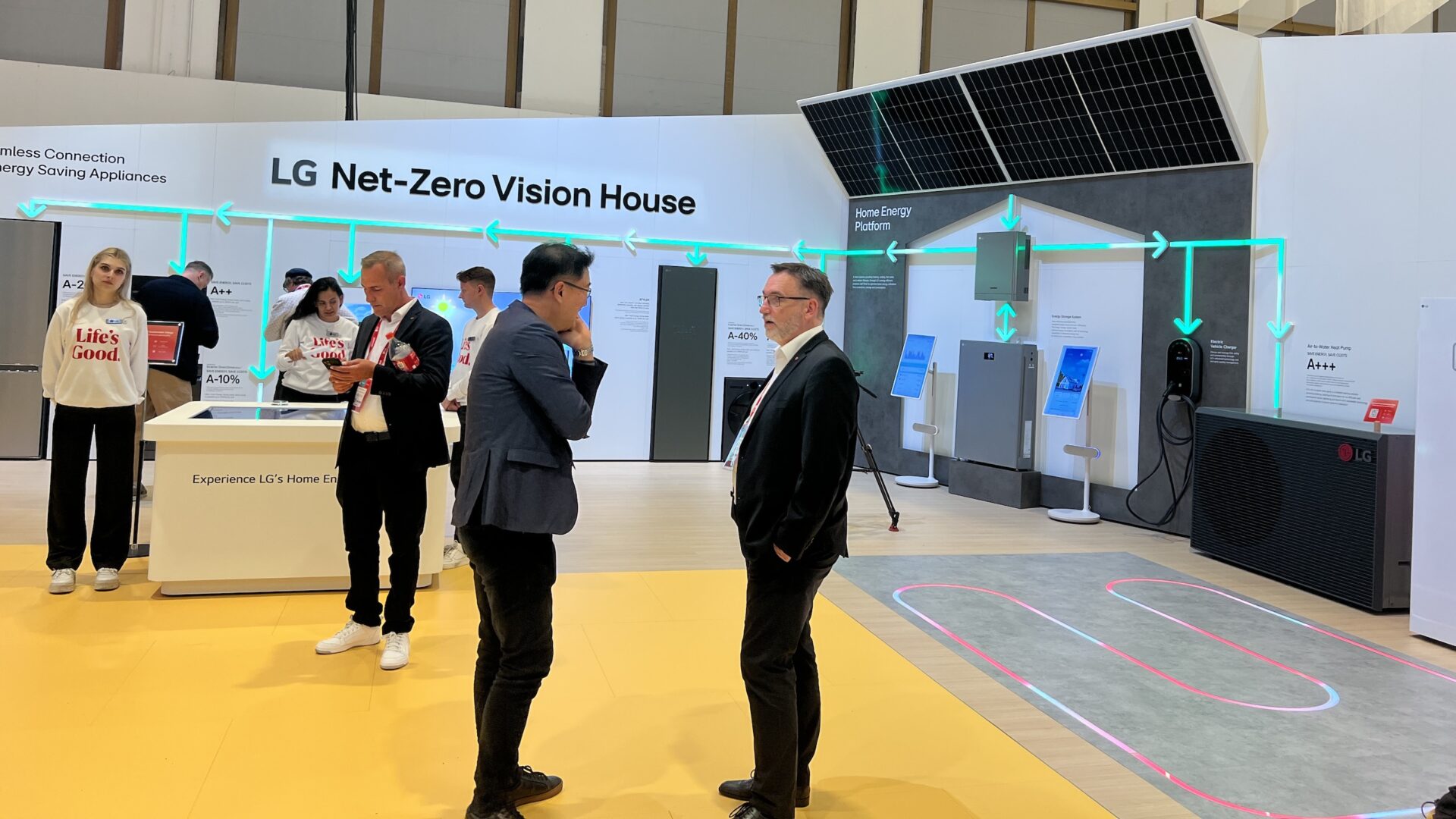 LG Electronics monter var ett typexempel på en stor trend på IFA-mässan, energibesparing och återvinning. Där de tidigare år haft hela väggar med jättelika tv-skärmar, hade de i år två (!) tv-apparater, sin flaggskeppsmodell och den portabla väsk-teven. Den övriga montern handlade om smarta apparater och den gröna omställningen.