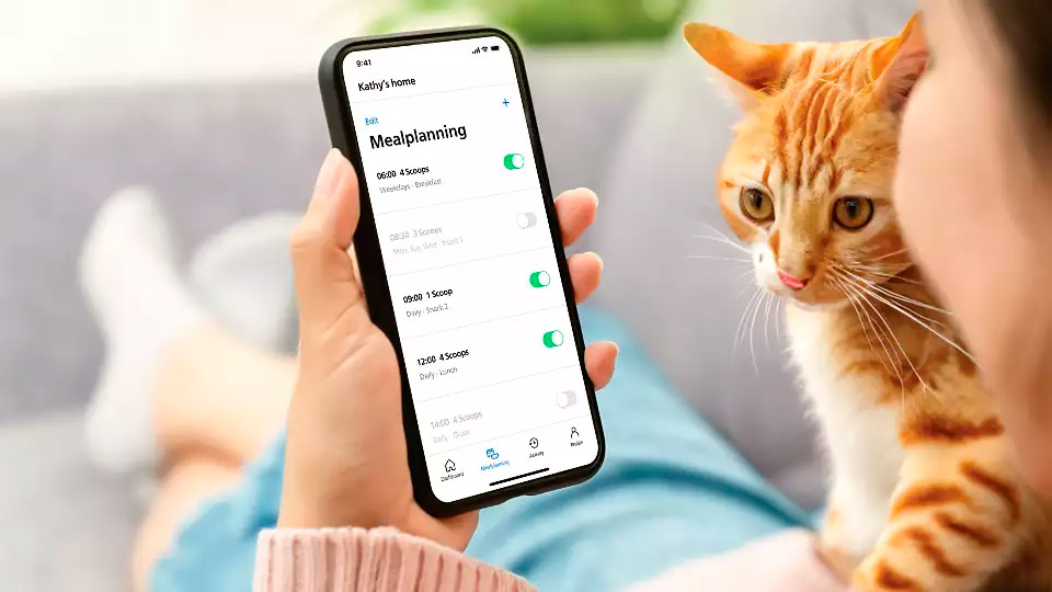 Philips smarta foderautomat med kamera är en uppkopplad produkt som hanteras via Philips Pet Series-appen (Android/iOS) där man kan planera exakta portioner i förväg och följa sitt husdjurs matningsschema. Man kan även se sitt husdjur i realtid via appen, och prata med det via tvåvägs röstfunktionen. Via appen kan man också få aviseringar direkt till sin mobil så man kan hålla kontakten med sitt husdjur även när man inte är hemma.