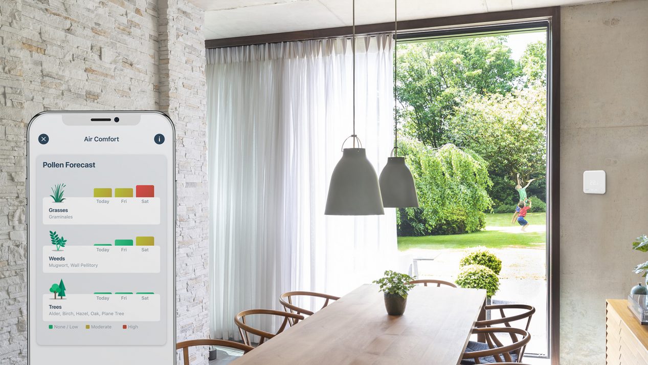 Termostatens app visar också en pollenprognos för dagen och de kommande två dagarna. Personer med allergier kan se pollennivåerna av gräs, örter och träd i närområdet.