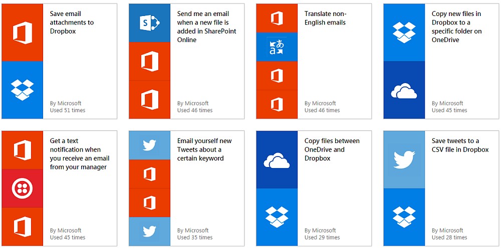 Nu hoppar även Microsoft på tåget med sin nya tjänst Flow. Tanken är att användare som hittar på något fiffigt ska kunna dela med sig av sina recept. Men redan från början bjuder Microsoft på en hel del smidiga recept på automatiseringar, och trevligt nog inte bara bland sina egna appar och tjänster.