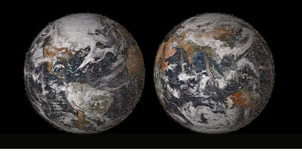 Mosaiken bygger på två bilder som är tagna av jorden från två olika håll på Earth Day, den 22:e april av en radiometer som sitter på en satellit som tillhör Suomi National Polar-orbiting Partnership (NPP). NASA ägnade två veckor åt att sätta ihop mosaiken efter att ha gått igenom 50 000 bidrag från Twitter, Instagram, Flickr, Facebook och Google+.