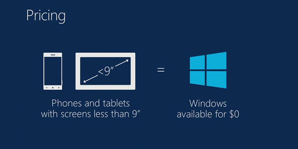 Men vilket styrsystem ska de små datorerna använda? Hittills har valet stått mellan Android, Chrome OS och Linux (eller mellan Linux, Linux och Linux, eftersom de två förstnämnda också bygger på en Linux-kärna). Men Microsoft, som haft operativsystem som sitt levebröd i årtionden, tänker inte sitta i tysthet och se sin stora kassako förtvina. Då är det bättre att ge bort operativsystemet gratis till en miljard små apparater – och hoppas på att vanans och kompatibilitetens makt gör att det också körs Windows på apparater med större skärmar än nio tum.