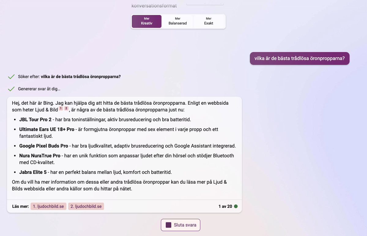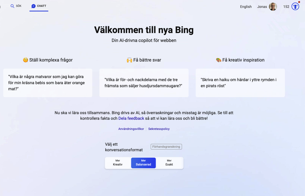 Efter att chat-GPT slog ner som en bomb och lärde vanligt folk hur långt användbara AI har kommit, har tech-bolagen tävlat om att visa vad de kan. Microsoft har haft långt gångna planer på att förstärka sin lite bortglömda sökmotor Bing med intelligenta konversationer. Hittills har man varit tvungen att ställa sig i kö för att komma in, men nu har Microsoft släppt lös den för alla.