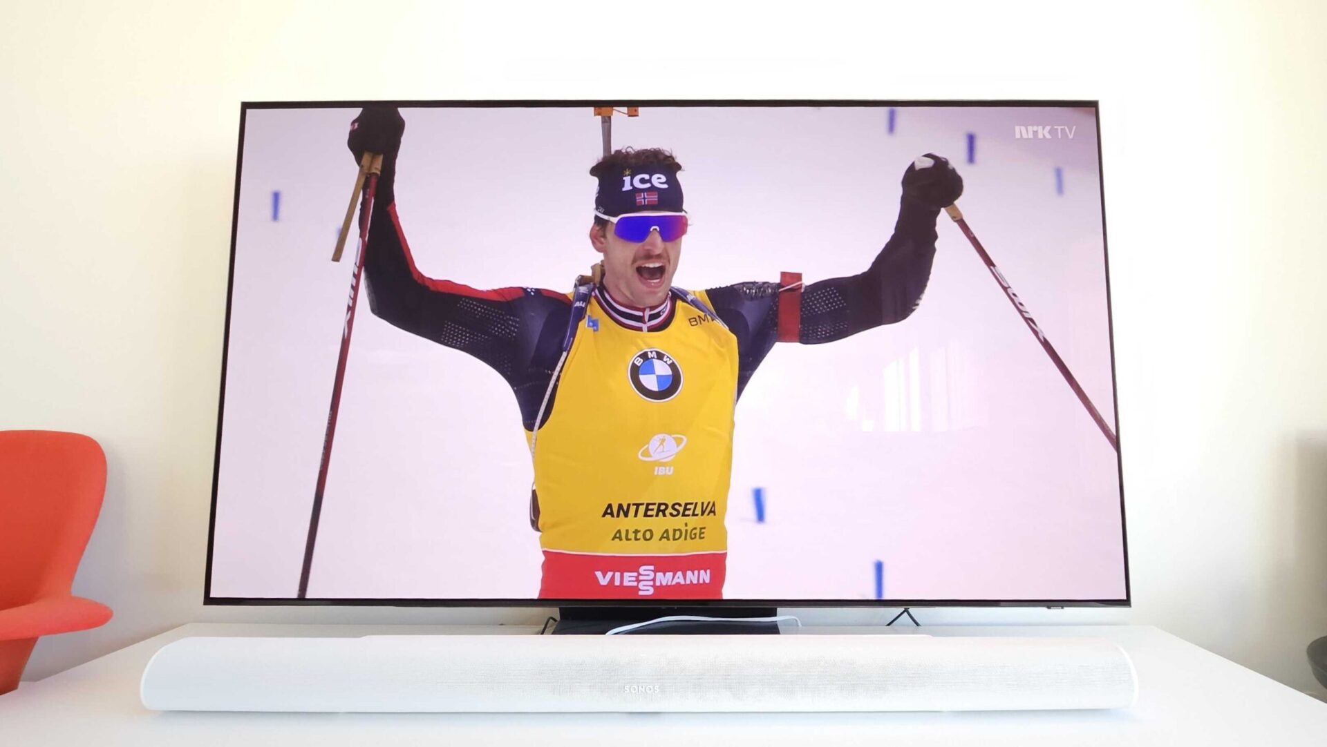 Direktsändningar har ofta en ganska kaotisk ljudbild med varierande ljudkvalitet. Det finns en blandning av kommentatorer, tränare och ivriga supportrar från skidstadion, vilket kan låta ganska hemskt. Men så länge din TV har ordentliga högtalare och bra ljudbehandling kan det vara både hörbart och stämningsfullt. Några av de modernaste TV-apparaterna använder AI för att förstärka ljudet och göra rösterna tydligare. Alternativt kan du naturligtvis ansluta en soundbar och förbättra ljudet ytterligare.