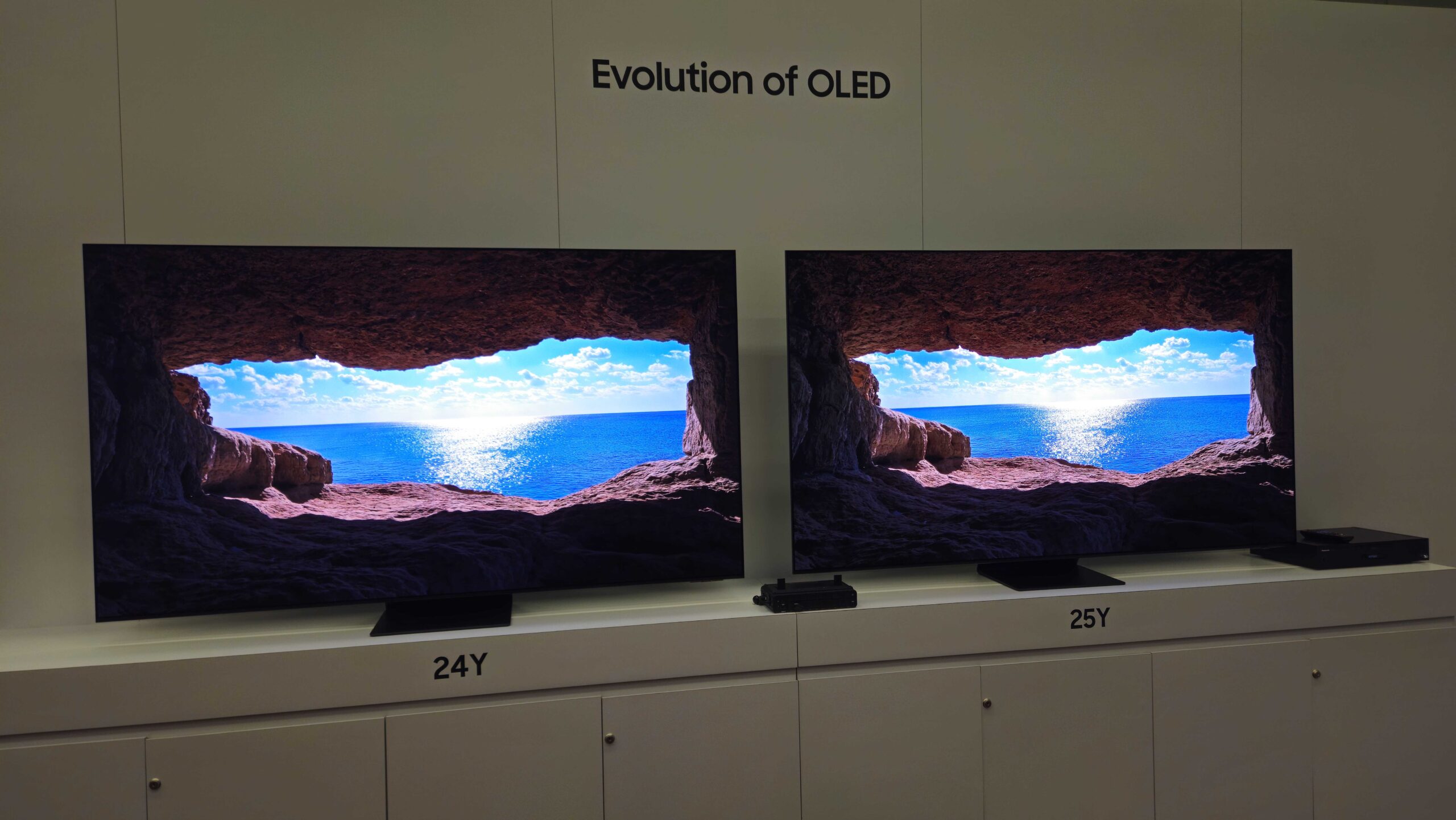 Vi fick en demonstration av den nya S95F tillsammans med föregångaren. Samsung visade oss några imponerande klipp med HDR-innehåll på den nya 65-tums S95F-skärmen, sida vid sida med sin föregångare, S95D. Efter att ha stått och flämtat i några sekunder insåg vi att det här måste ha varit en av de häftigaste HDR-demonstrationerna vi någonsin har sett!