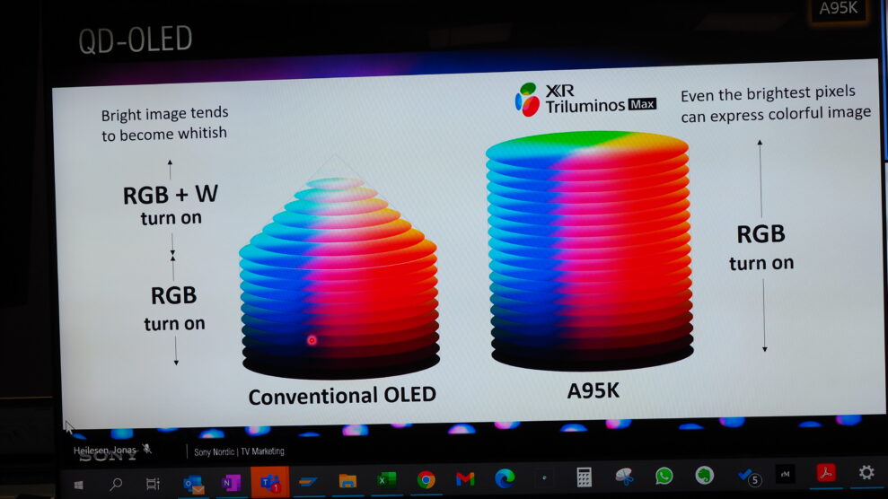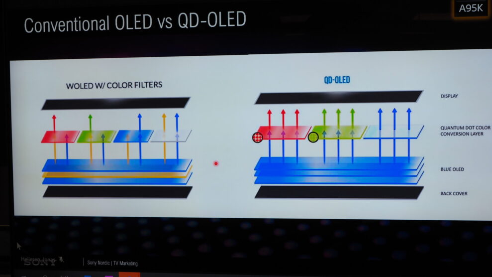 QD-OLED är en ny typ OLED med kvantprickar (quantom dots) utvecklade av panelproducenten Samsung Display. Därför var det naturligtvis överraskande att Sony – som första producent i världen – kom före Samsung Electronics (TV-producenten), genom att vara först ute med en faktisk modell.