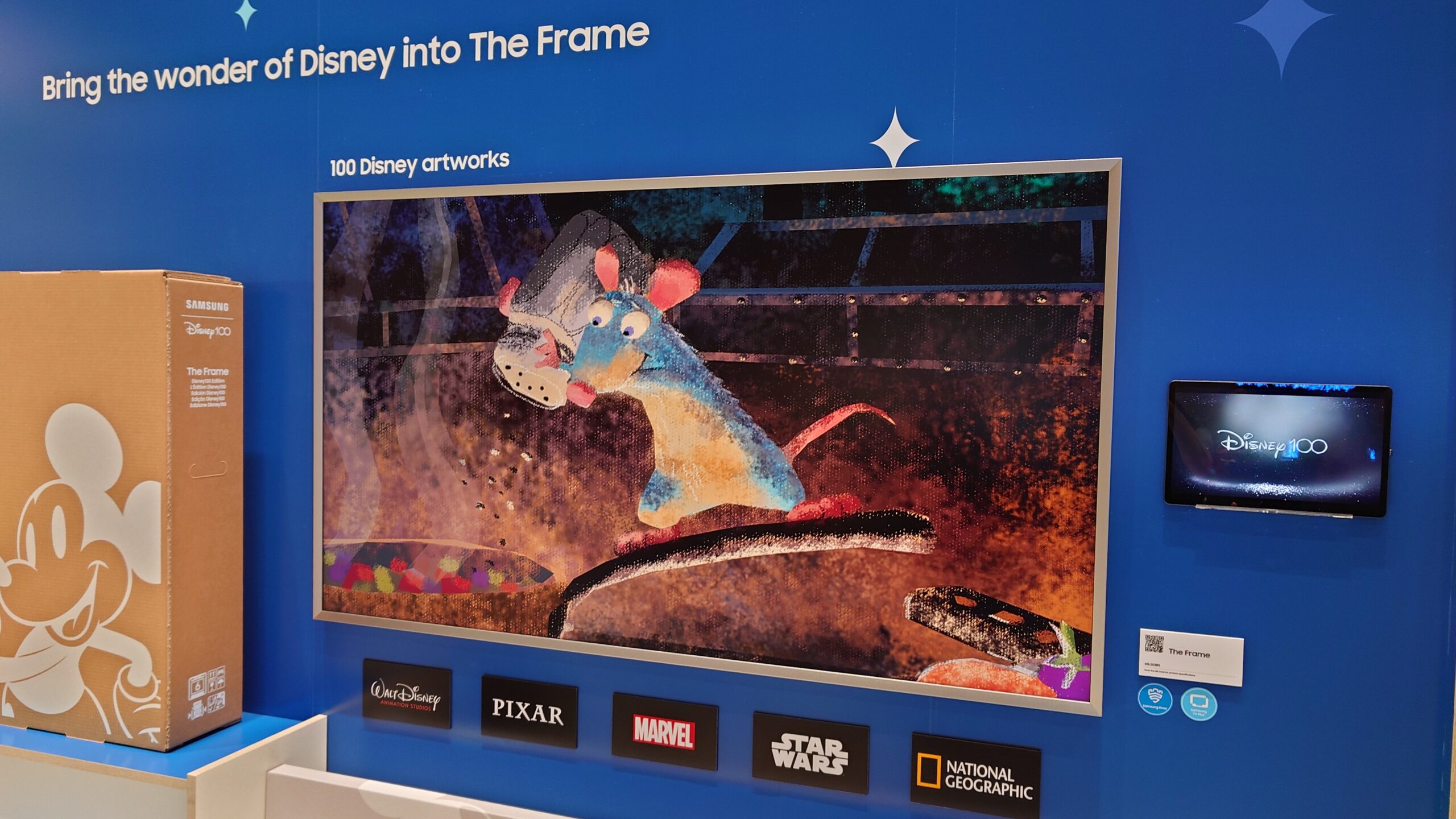 Här fick vi även en glimt av den nya ”Disney100”-versionen av Samsung The Frame som tillkännagavs förra veckan. Den kommer med bland annat ett exklusivt fotogalleri, inramning med Disneys logotyp, och en ”Mickey Mouse”-inspirerad solcellsdriven fjärrkontroll.