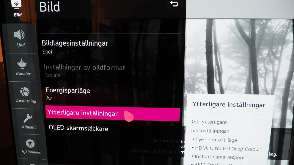 Att aktivera spelläget är enkelt: välj bara ”Spel” under bildinställningarna i snabbmenyn.