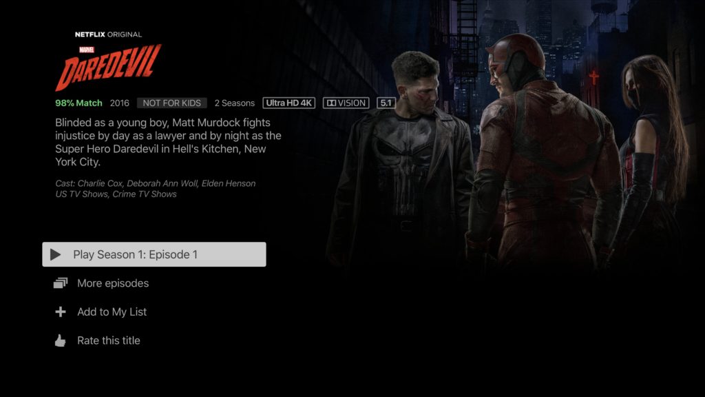 Apple lägger inte bara till högupplöst bild, vilket är på tiden, utan går ett steg längre och bjuder oss på större färgdjup med stöd för HDR. Därmed blir plötsligt HDR inte bara ett modeord för att sälja TV-apparater, utan något vi alla helt plötsligt får tillgång till. Med innehåll från iTunes, Netflix och Amazon Prime kan nu sitta hemma i soffan och klicka fram filmer som gör rättvisa åt ens nya fina TV som stöder ny teknik för fantastisk bildkvalitet.