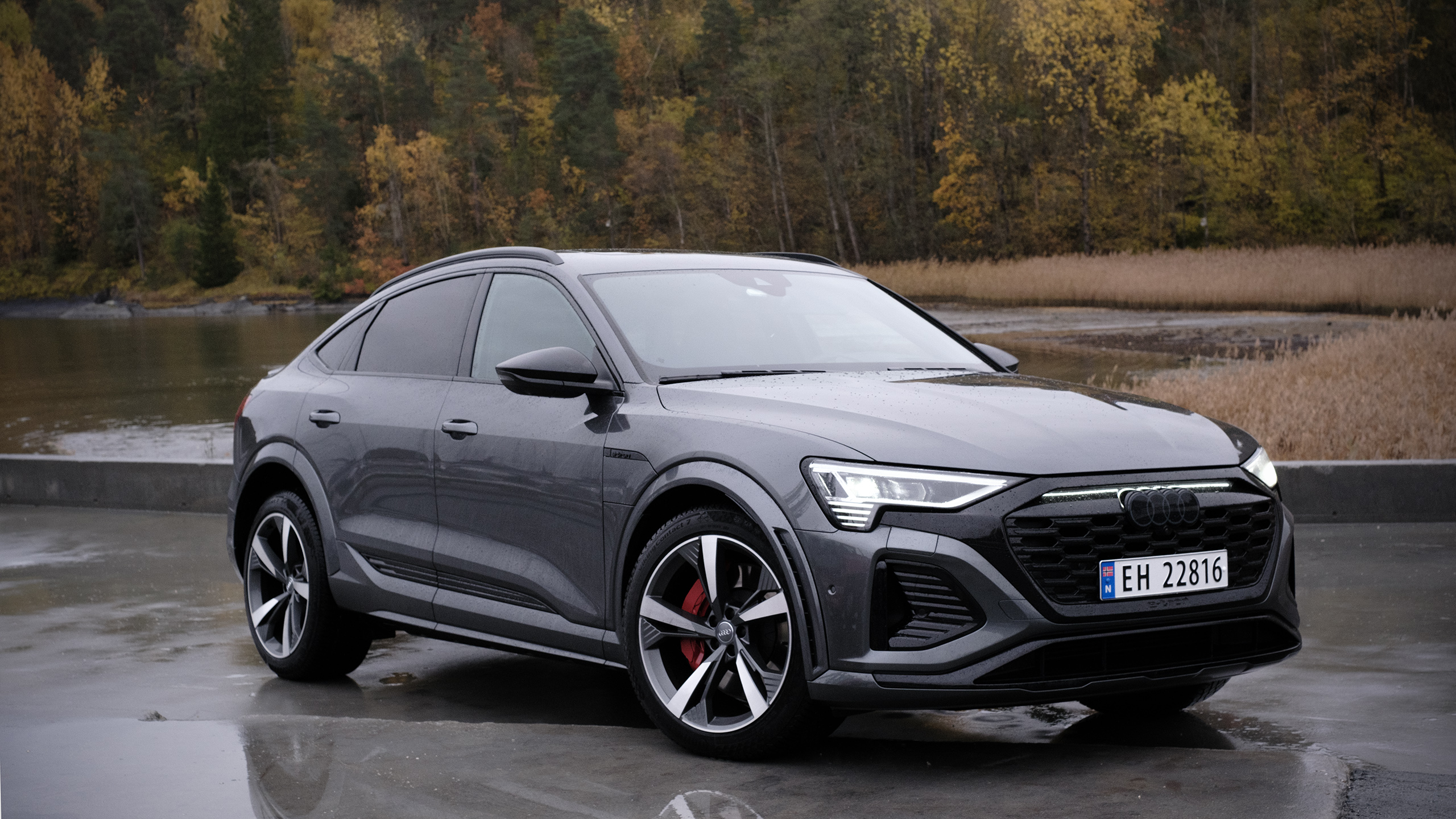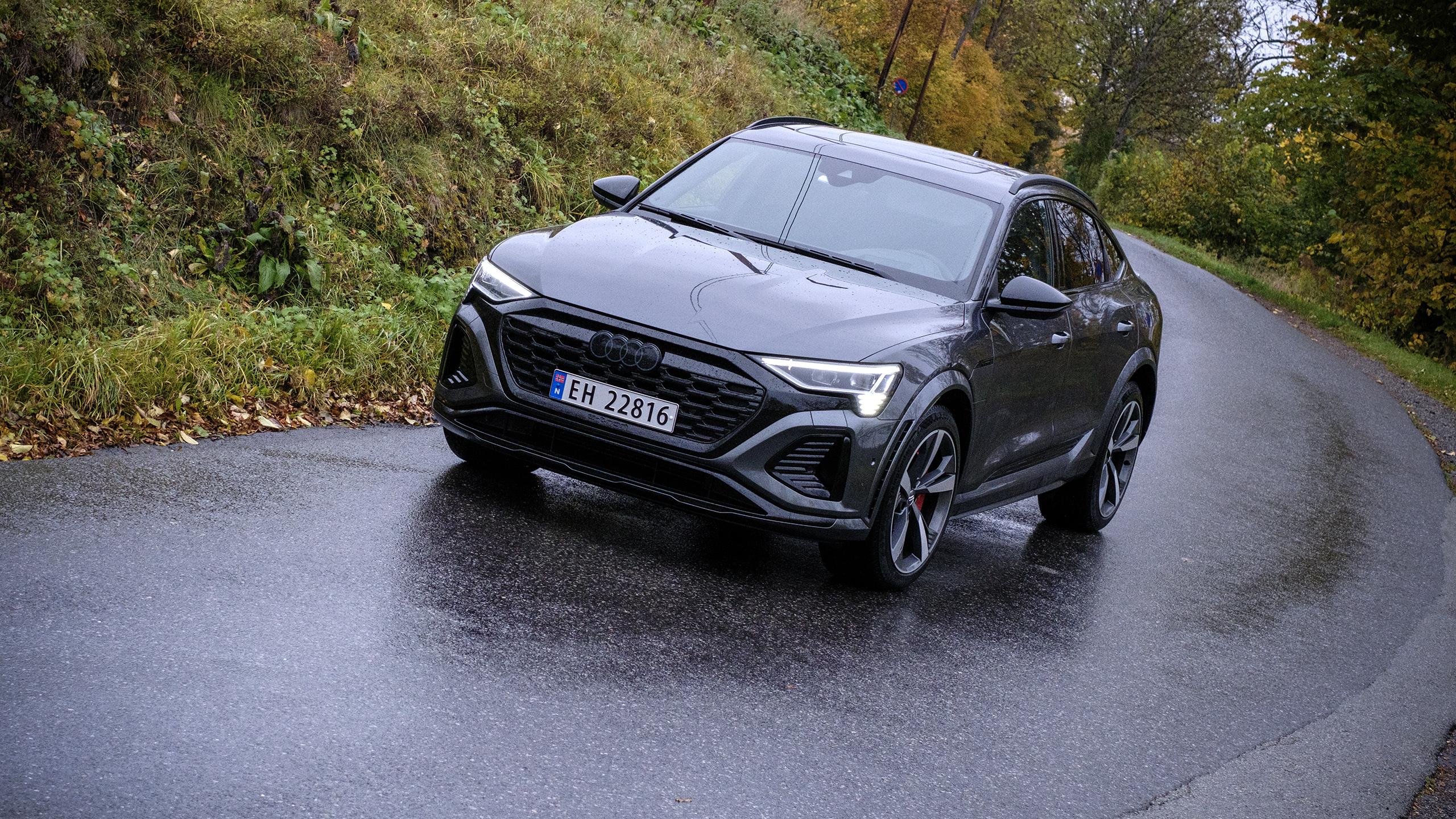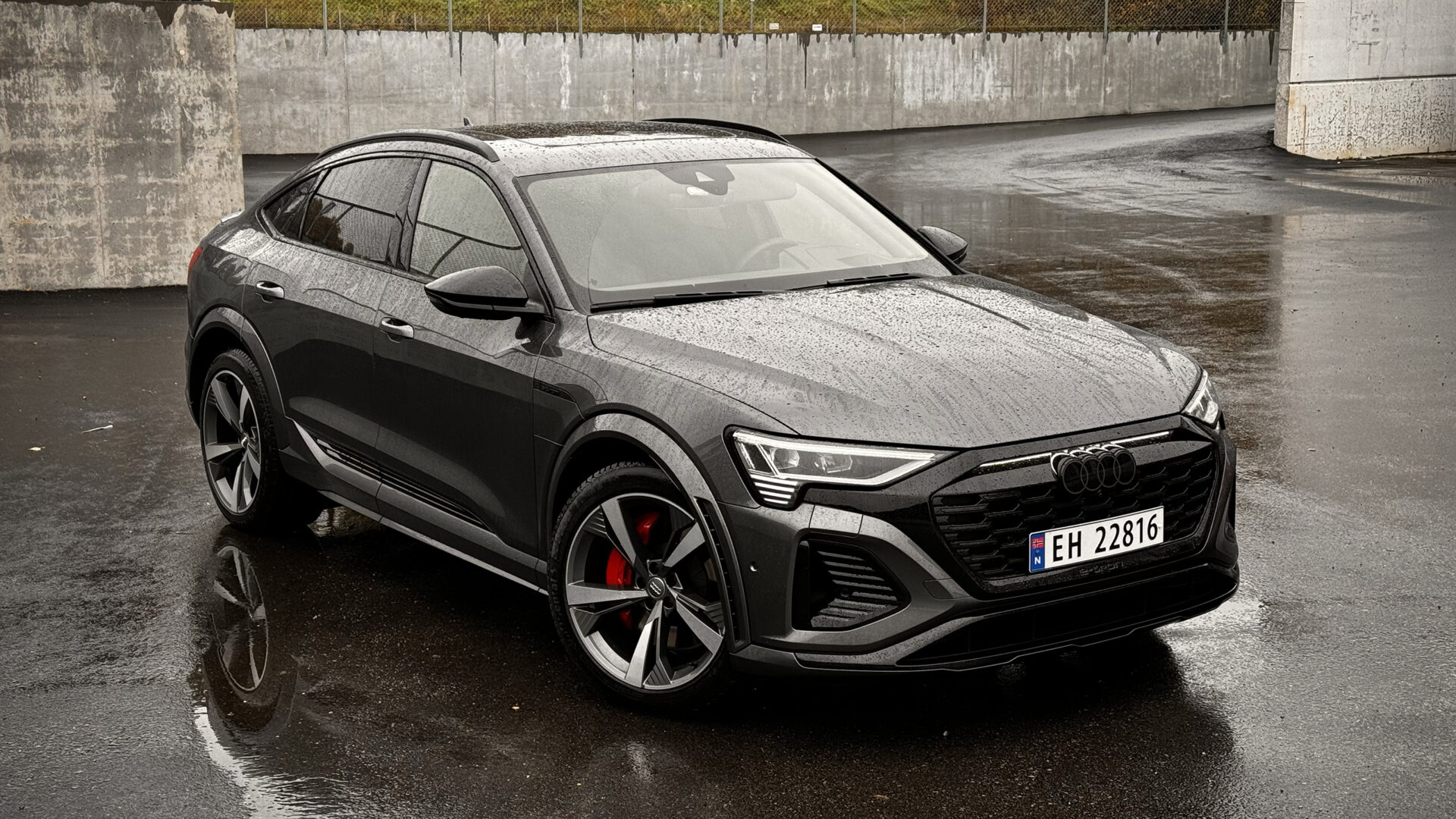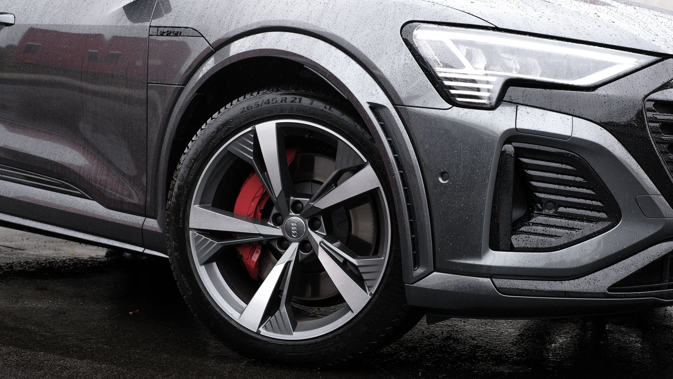 Ett säkert tecken på att det är en Q8 e-tron, och inte den äldre versionen, är de fyra ringarna som är plomberade på grillen i en Q8. En LED-list sitter i den slutna grillen, nya fälgar har tillkommit och stötfångarna har gjorts om. Mindre synliga är aerodynamiska förbättringar som har sänkt luftmotståndet från 0,26 till 0,24 i Sportback-varianten vi testade.