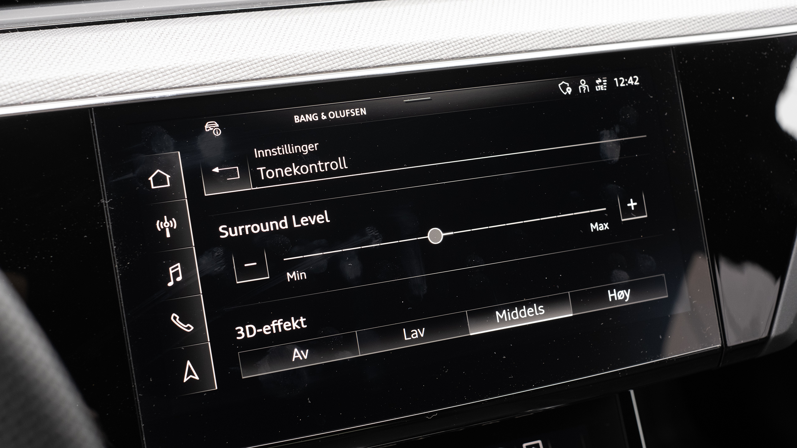 Ljudet från B&O-systemet är mycket mer potent än Audis ljudsystem, som vi provade i en Q8. B&O har mycket mer kraft och dynamik, med djupare bas och en större ljudbild. Man märker det inte så tydligt i radiosändningar, men streamar man musiken från mobilen i stället så får man en hörbart bättre ljudkvalitet.