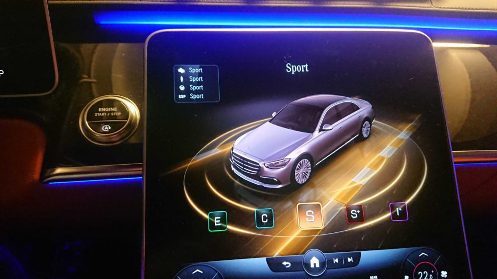 Det visar sig dock att vi har börjat resan i komfortläge. Med ett tryck på Dynamic-knappen byter vi till sportläge och då blir S-klass ett helt annat vilddjur. Sätena stramas åt och chassit blir fastare. Hela bilen känns plötsligt en storlek mindre på vägen. Motorn får också en helt annan respons, med ett intensivt morrande från avgasrören. Vilket får föraren att flina från öra till öra!