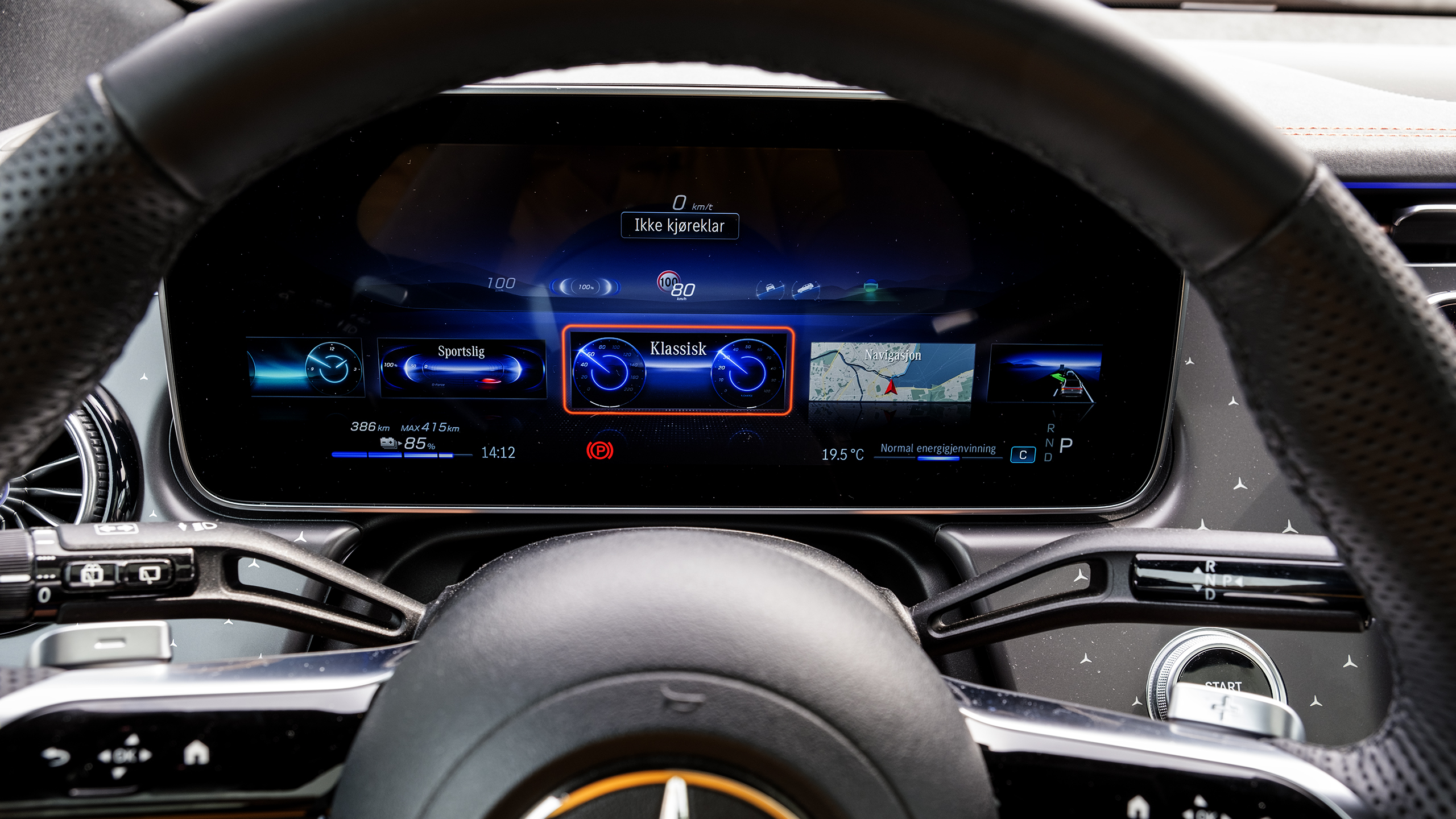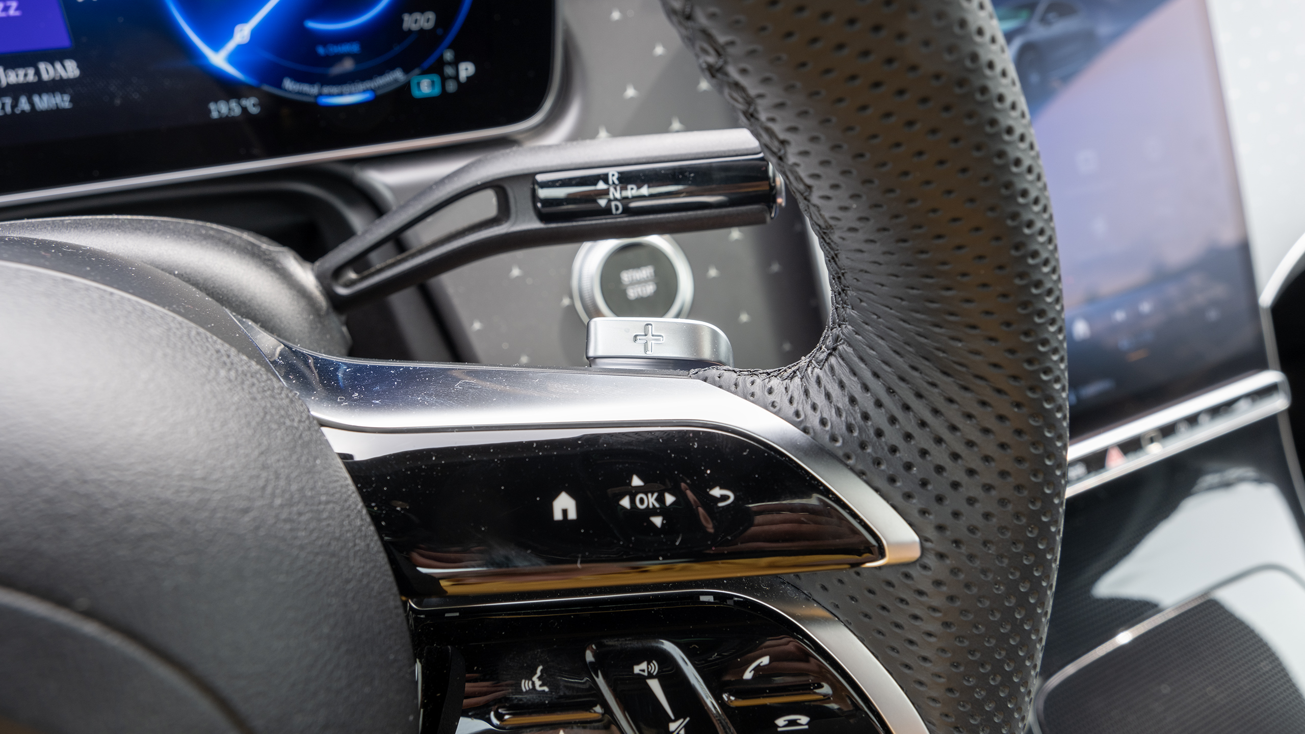 Det finns många beröringsytor här, inte bara på skärmen, utan alla inställningsval på ratten, farthållaren och så vidare är beröring med haptisk feedback. Det tar lite att vänja sig, men även då fungerar det bara sådär. Ge oss åtminstone fysisk kontroll över volymen, Mercedes!