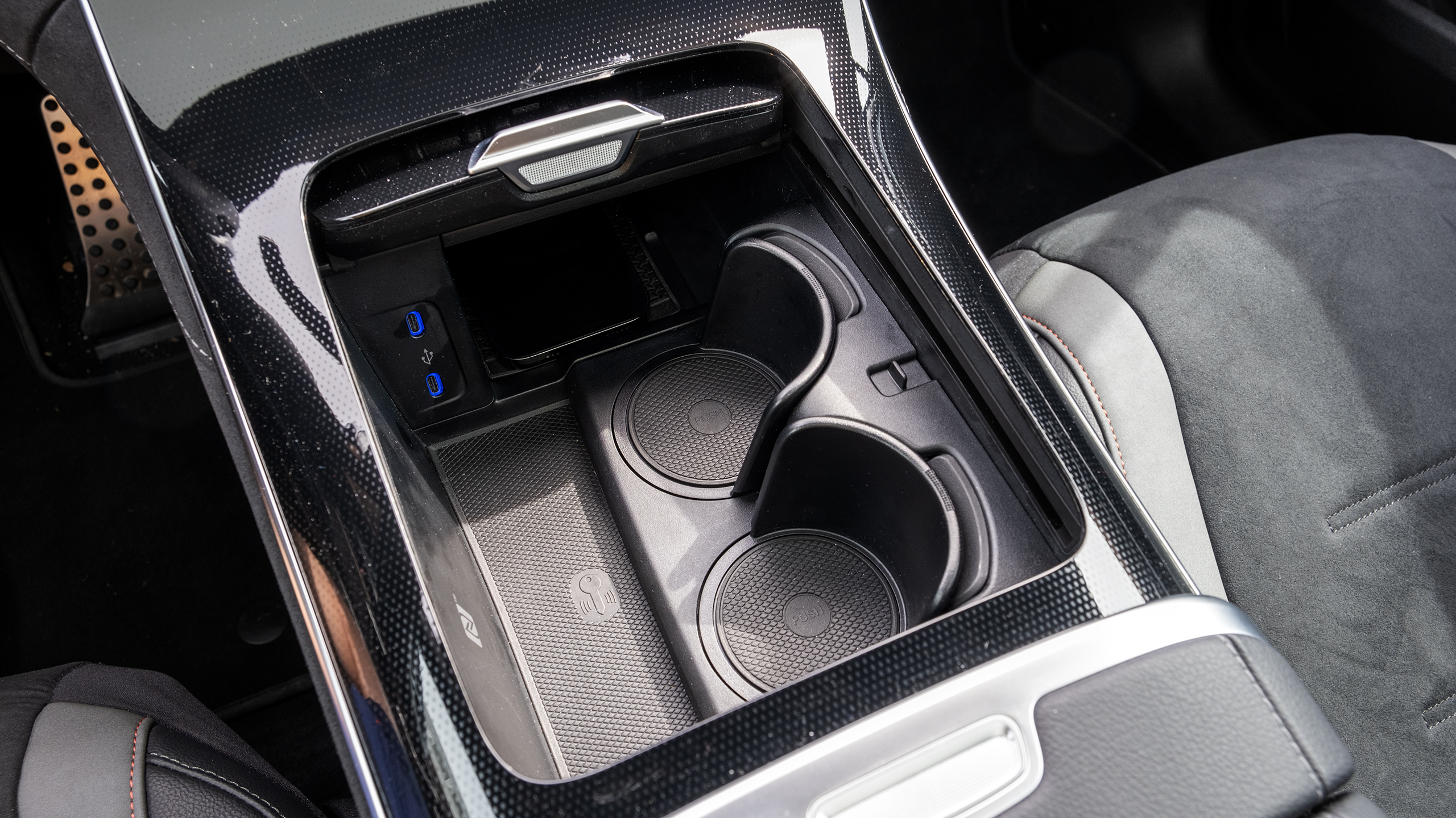 Lyxkänslan man får när man sätter sig i en Mercedes EQS, eller S-klass för den delen, är inte särskilt mycket sämre här. Stora, bekväma och inbjudande sportstolar och massor av utrymme, även i baksätet, med genomarbetade detaljer runt omkring, säger oss att vi definitivt har tagit ett steg upp i klass från EQB eller EQC.