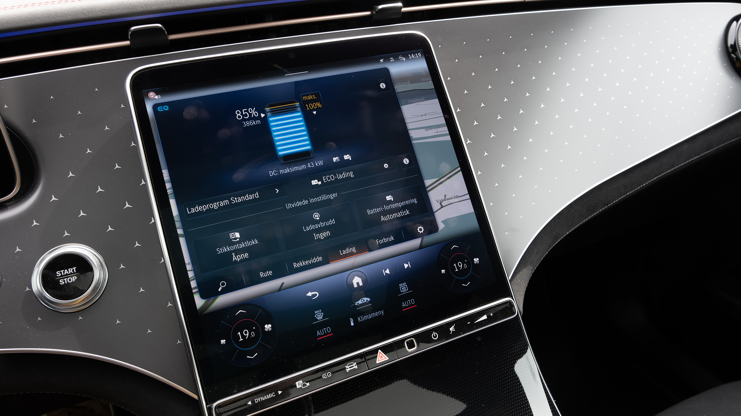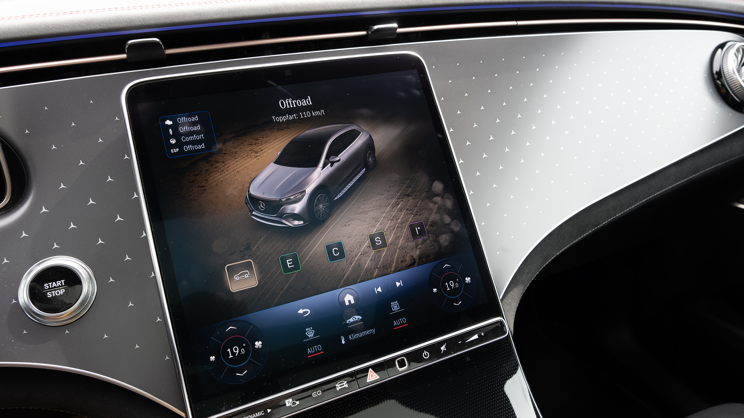 Det säger sig självt att en tung SUV drar mer el än en låg sedan. Men Mercedes förvånar med en förbrukning på 18,9 kWh, vid en kombination av stadskörning, landsväg och motorväg. Det är definitivt godkänt, även om det måste sägas att stadskörning med snabba accelerationer pressade förbrukningen långt över 22 kWh.
