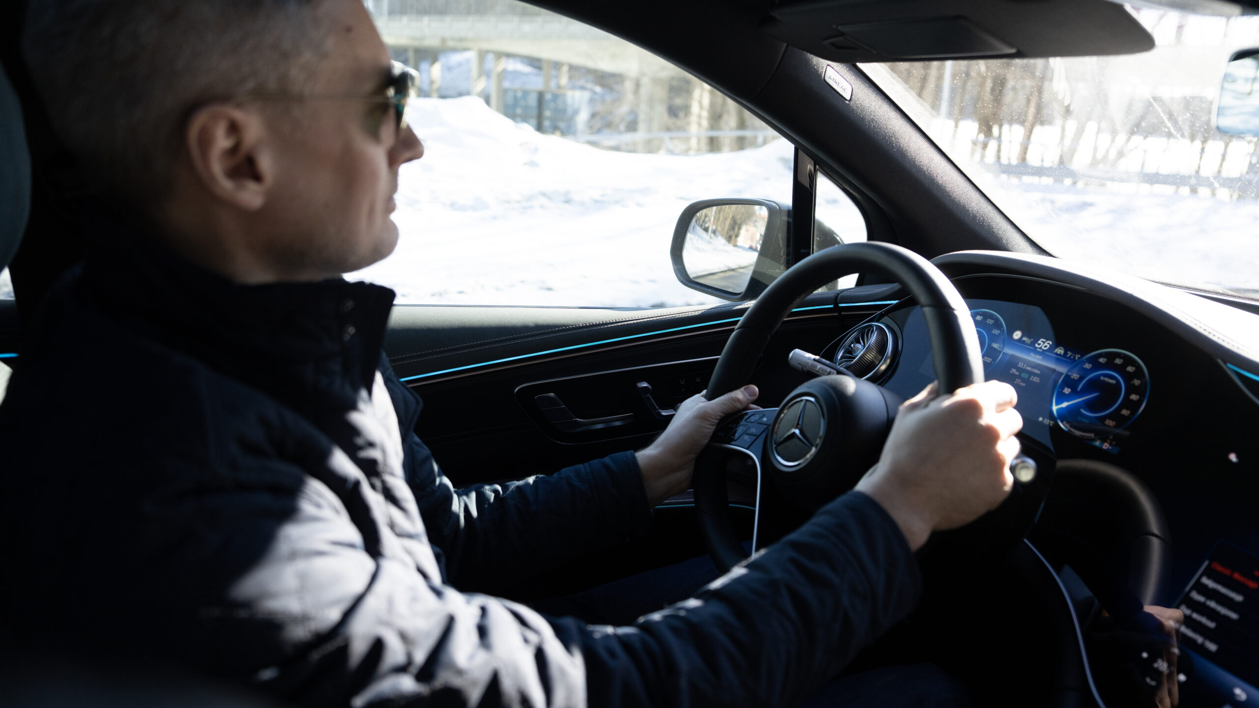 Vi hoppade in i flaggskeppet direkt efter att ha testat den kompakta EQA, trots detta kändes storebror förvånansvärt lättmanövrerad.