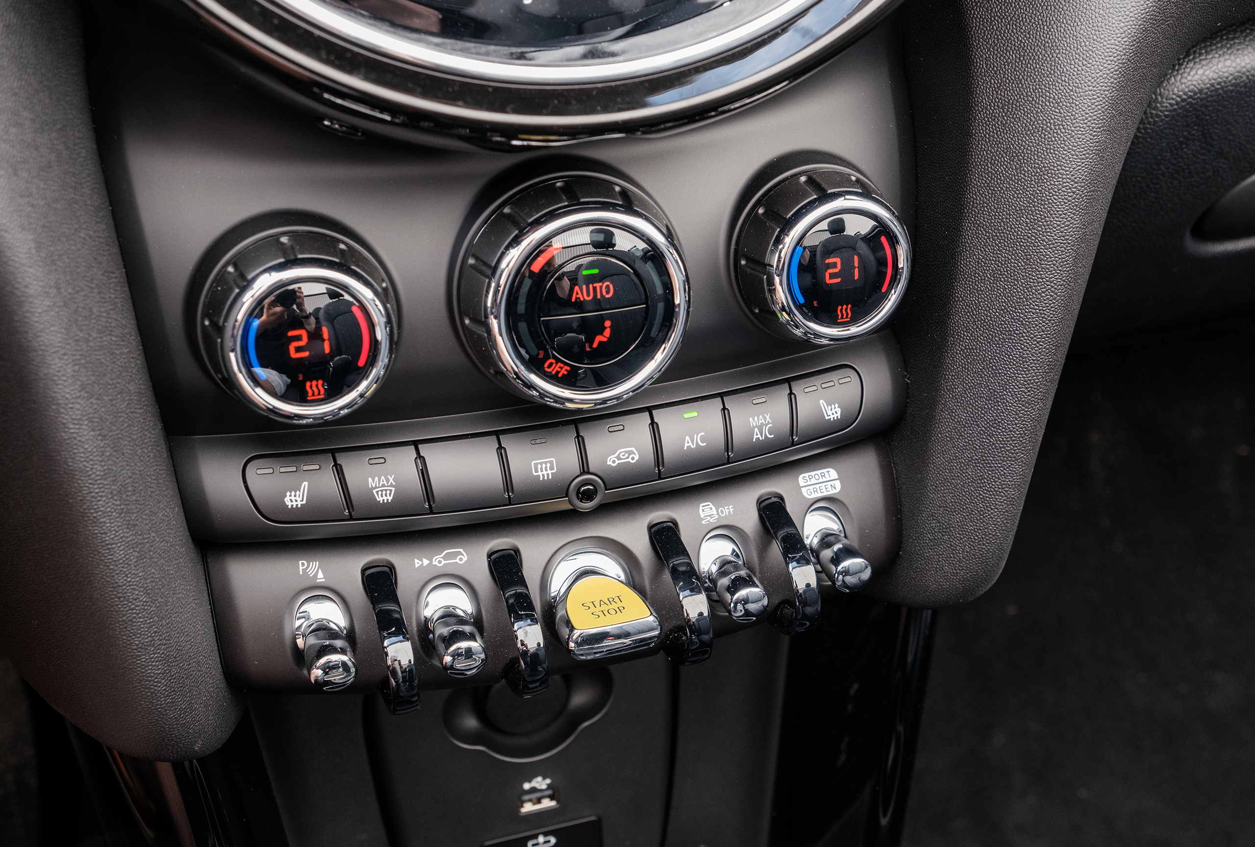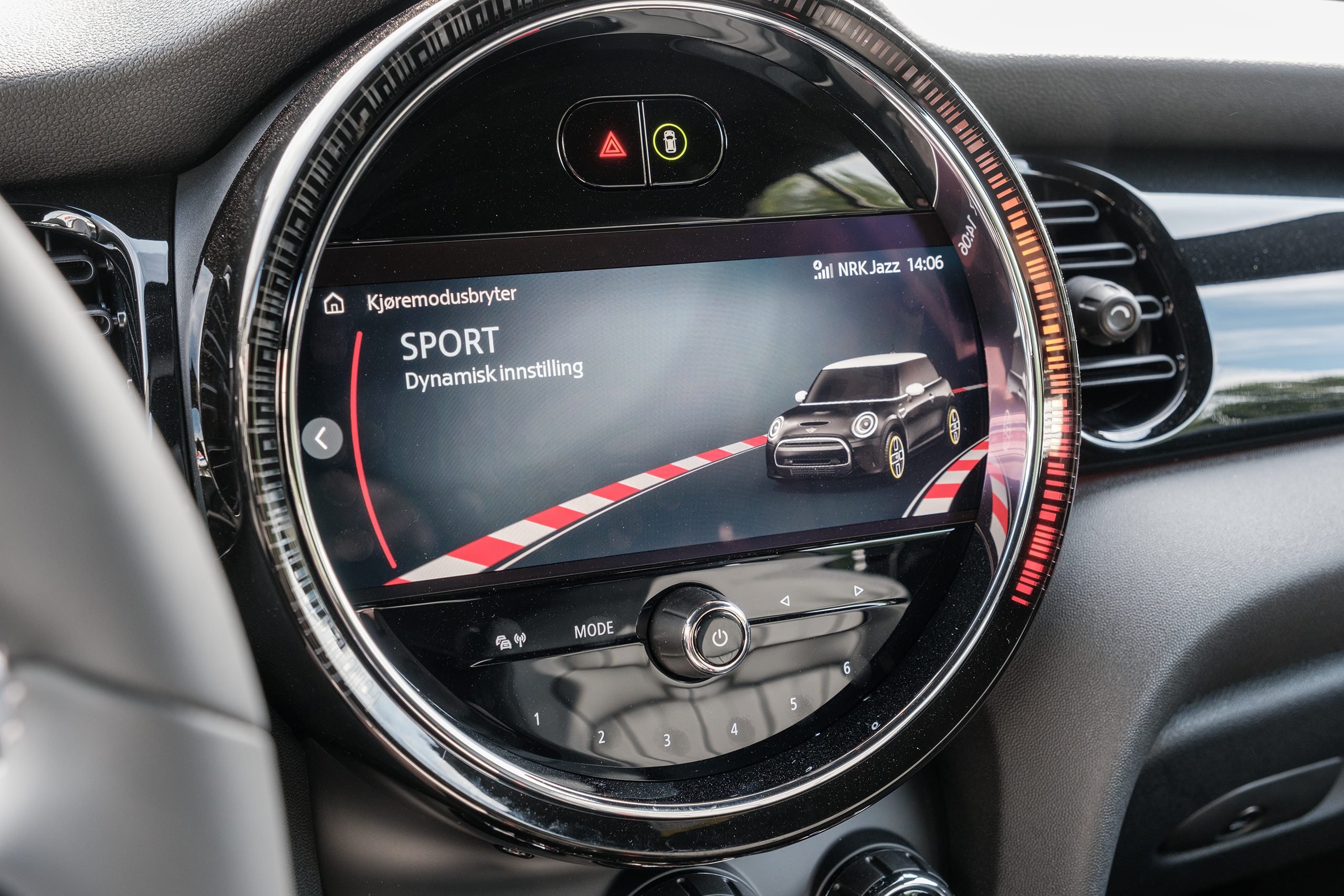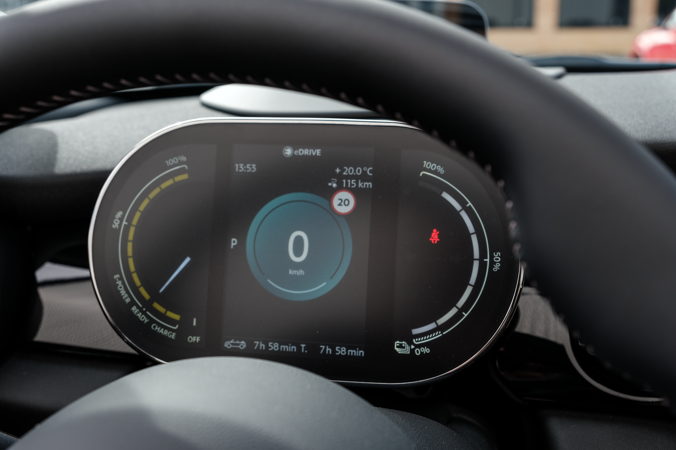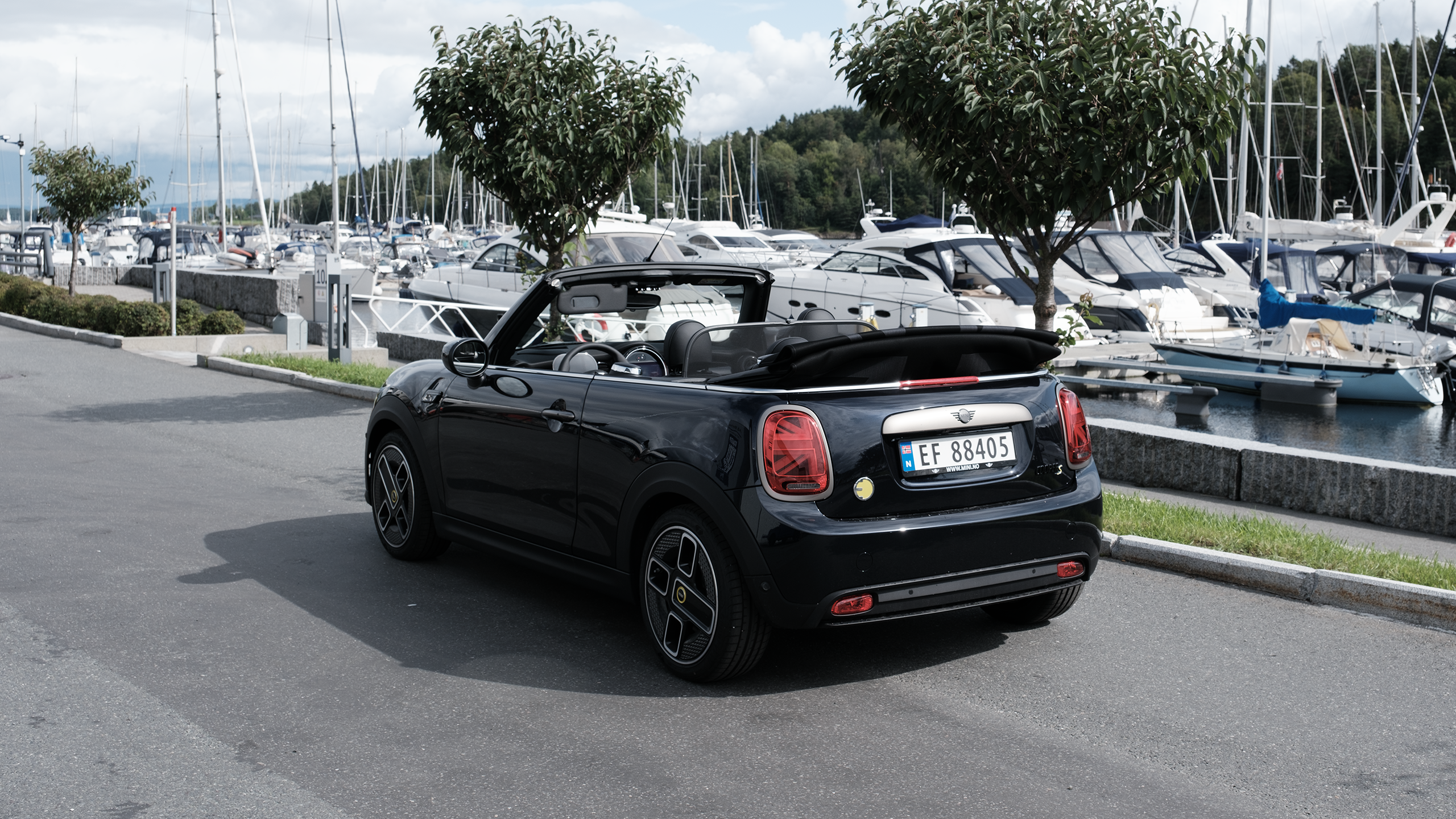Små detaljer, som att bakljusen är en Union Jack-flagga delad i två delar, och att samma mönster går igen i yttertaket och på insidan, väcker munterhet både hos ägaren och åskådarna. Det falska luftintaget i fronten är en helt onödig detalj, eftersom det sitter en elmotor på 135 kW under motorhuven och inte en turboladdad bensinmotor.