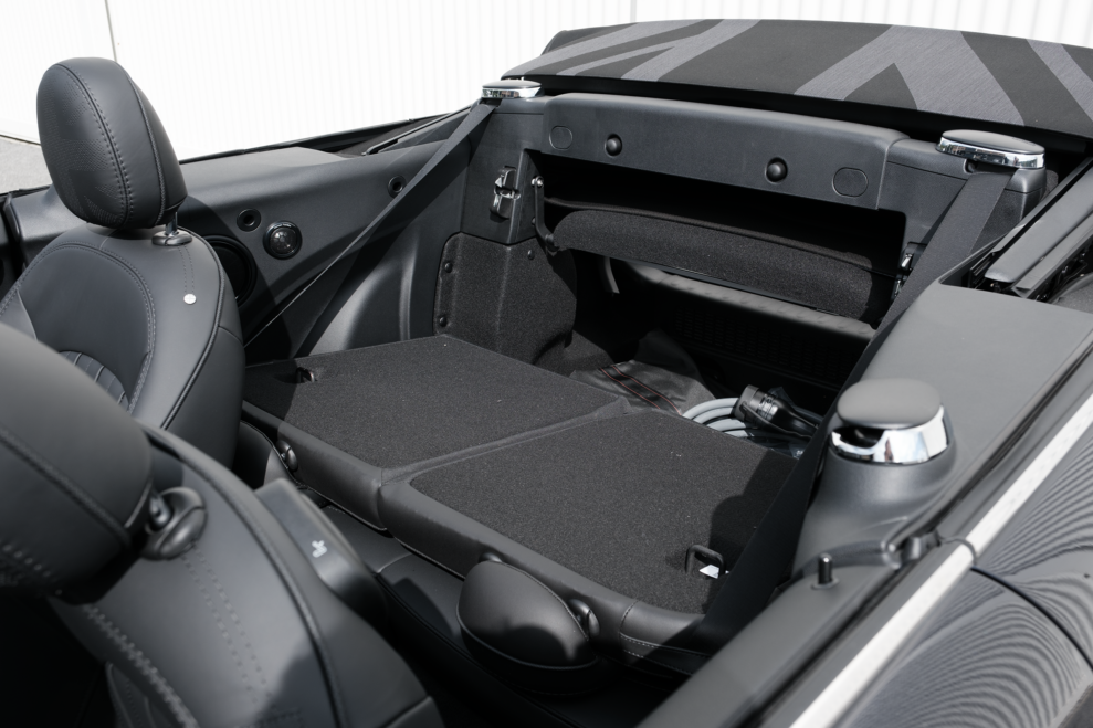 Den korta bilen är inte heller särskilt praktisk. Den är registrerad som fyrsitsig, med två väldigt små baksäten som passar för barn, inte vuxna. Det finns helt enkelt inte tillräckligt med benutrymme i baksätet. Baksätet och passagerarsätet fram har Isofix-fästen och det lilla bagageutrymmet på 160 liter kan utökas genom att fälla ner ryggstöden bak.