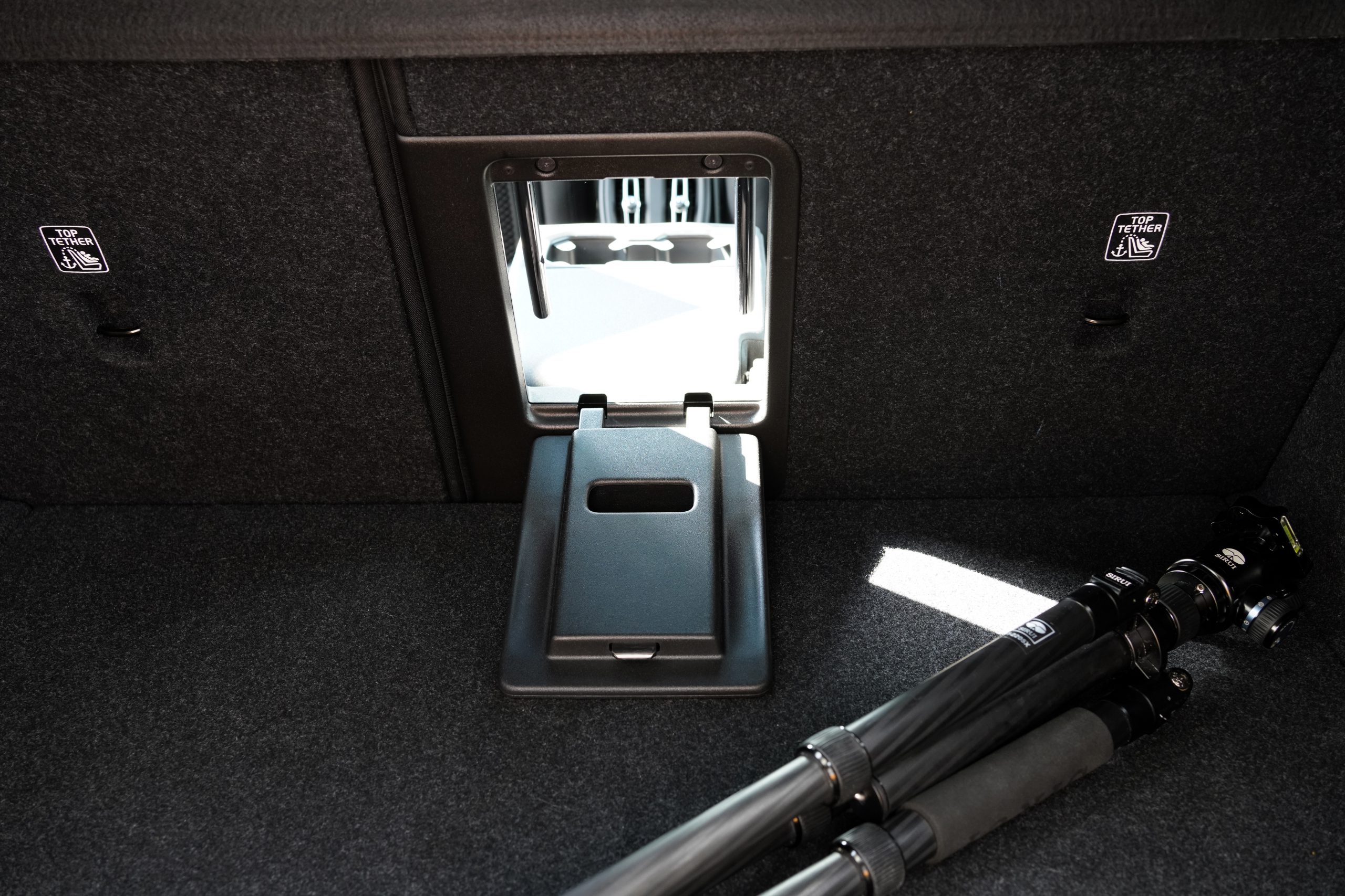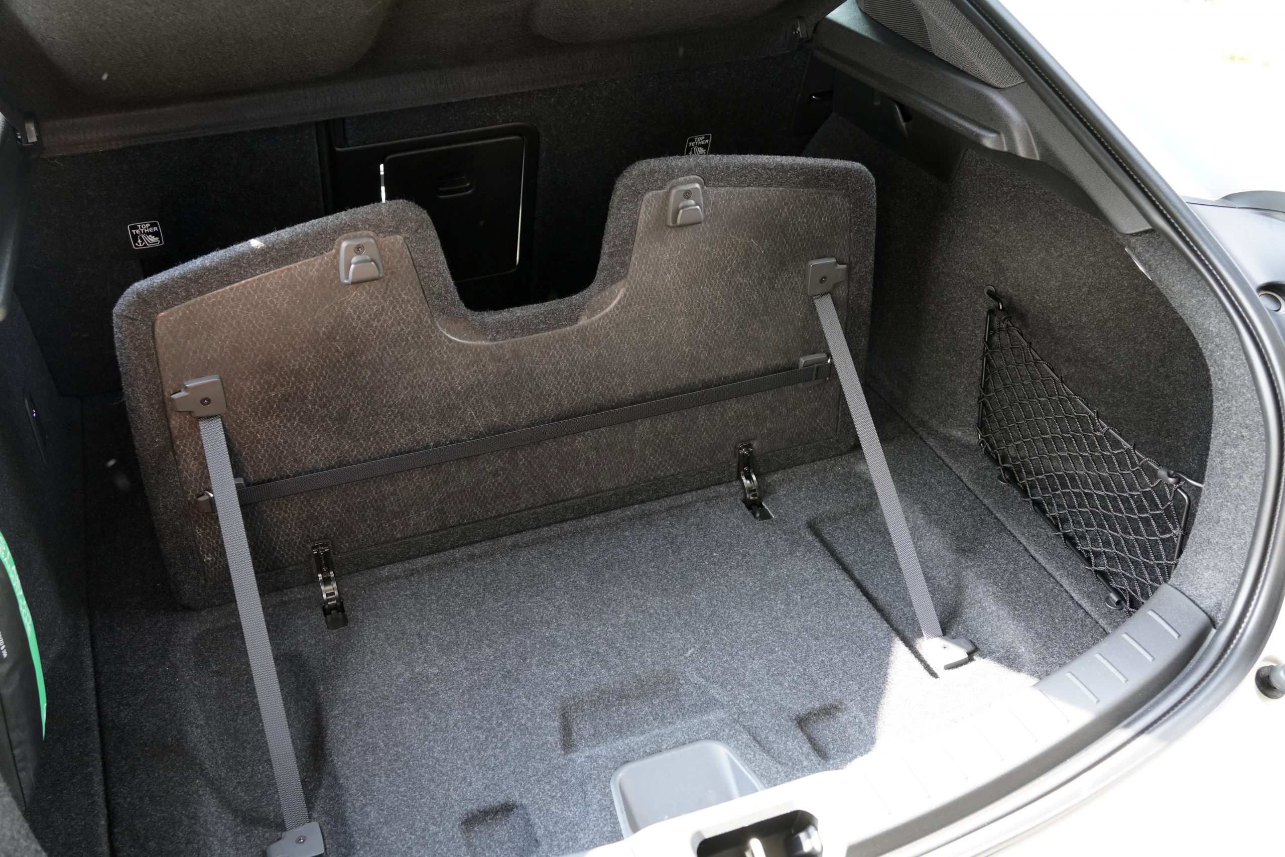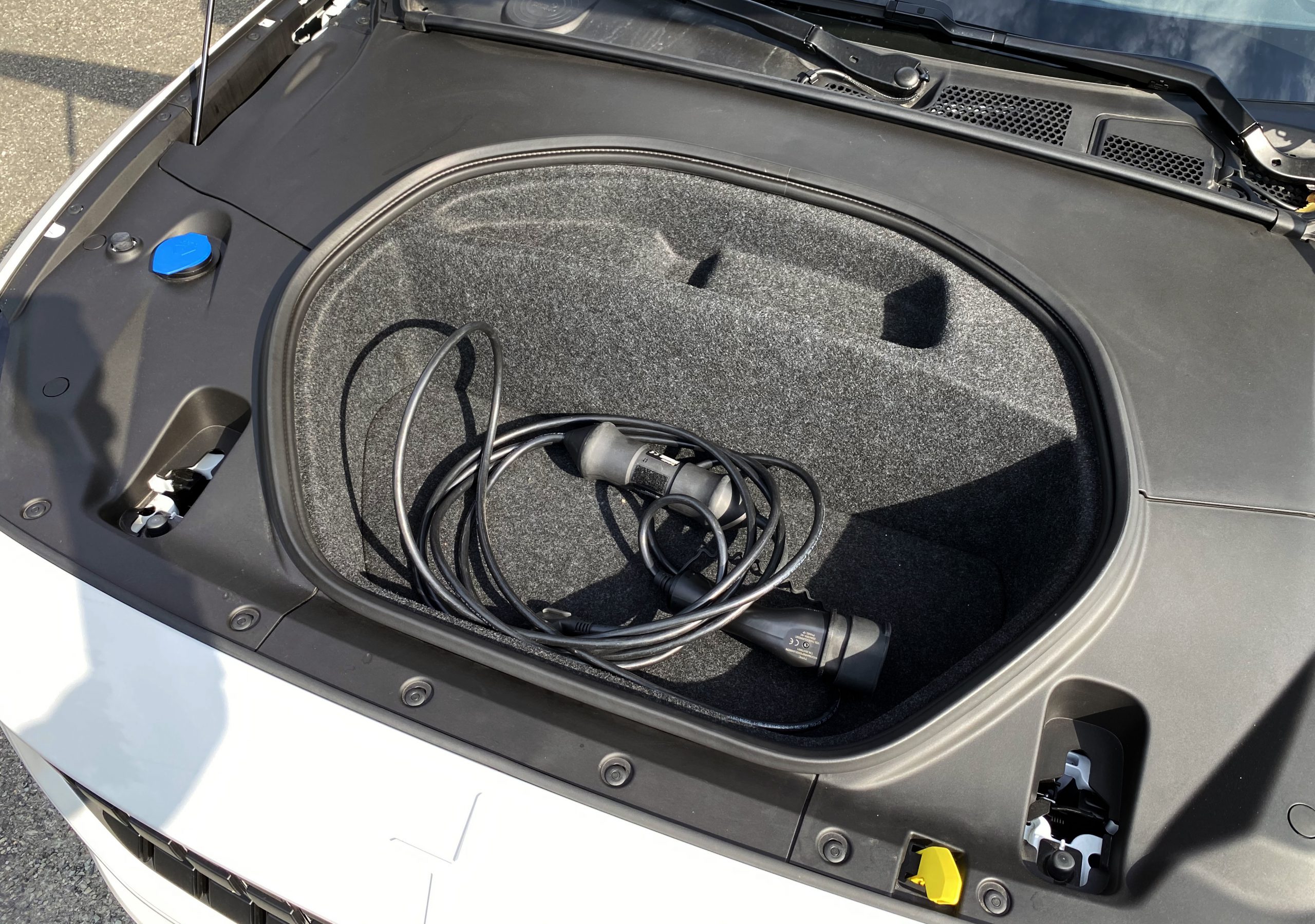 Men den stora bakluckan är ett jätteplus. Till skillnad från på en Model 3 öppnar sig luckan ända upp till taket och kombilösningen gör att Polestar 2 är bekvämare att lasta i än en Model 3. Som har rena rama brevinkastet om man jämför. Bak finns för övrigt fem lastkrokar för shoppingnät, ett litet utrymme under golvet – som också har en uppfällbar avdelare och ett 12 V-uttag. Längst fram under huven finns ett litet utrymme på 35 liter med plats för en weekendväska. Där, under botten som kan lyftas upp, hittar man varningstriangeln och kitet för däckreparation.