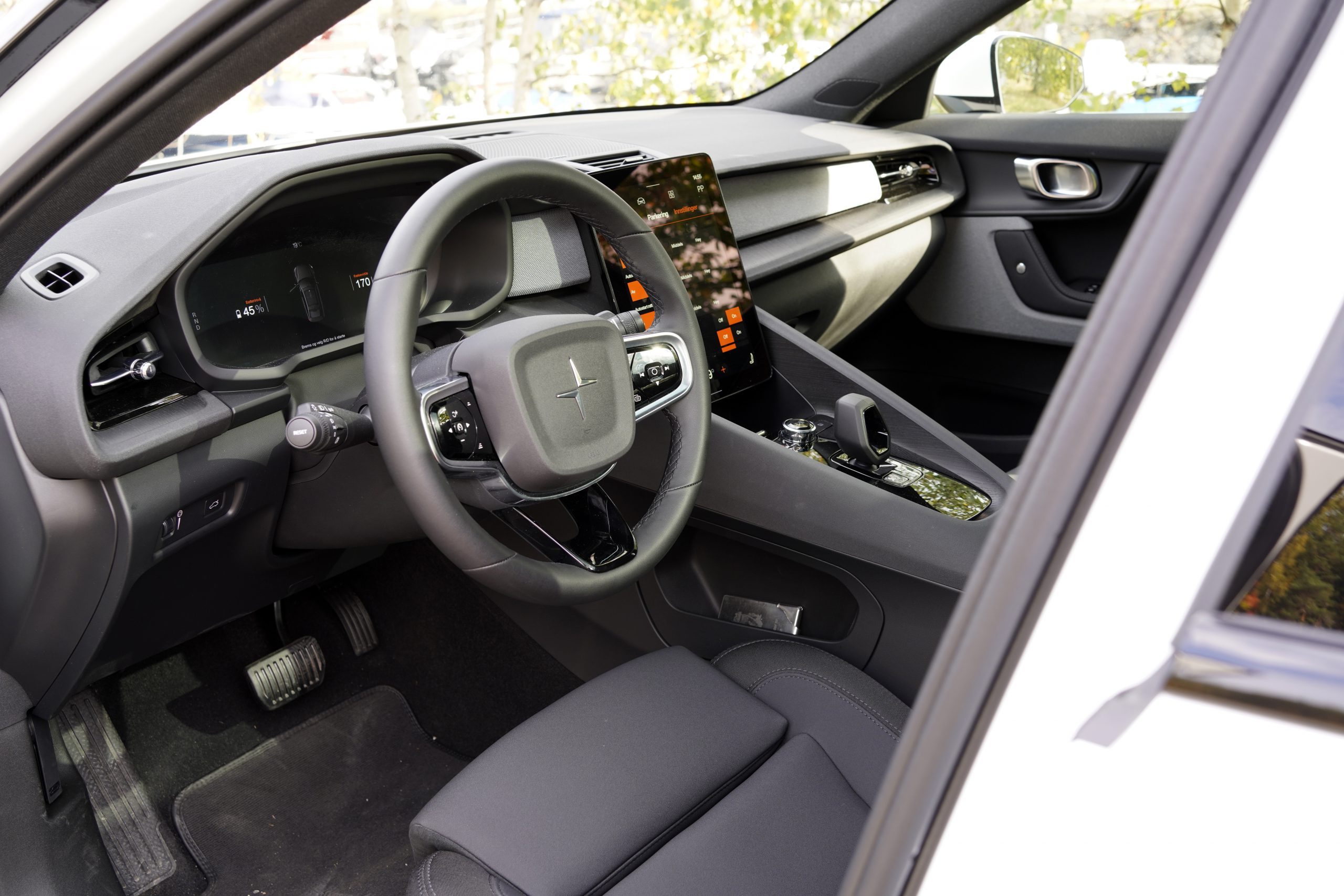 Det hintas mer om Volvo inuti än utanpå. Reglagen till fönsterhissarna och ratten är uppenbara Volvo-delar, men Polestar 2 är ett eget bilmärke som ska stå på egna ben, och nya bilmodeller kommer att dela plattform med, men skilja sig markant från, framtida elektrifierade Volvo-modeller.