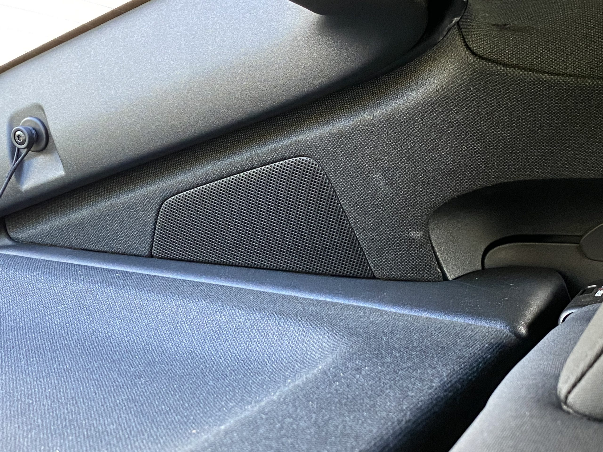 Längst fram sitter bas/mellanregister i dörrarna, diskanter längst ner på A-stolparna och en centerhögtalare mitt på ovansidan av instrumentbrädan. I baksätet finns det också två element på varje sida, men där sitter bas/mellanregistret längre ner i dörrarna och diskanten överst i dörrsidorna. Högtalare är också placerade i varje C-stolpe bak och en subwoofer finns integrerad, med egen nivåjustering från den 11,2 tum stora skärmen i mittkonsolen.