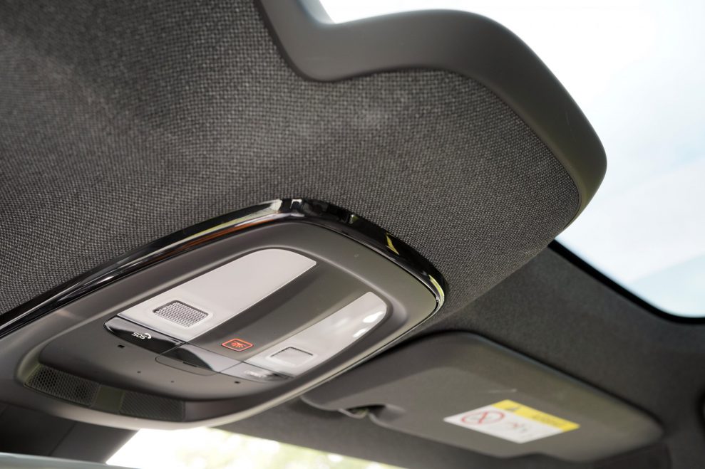 Tyget i taket verkar billigt, som hårdplast överdraget med syntetisk textil, och det återvunna tyget i de annars så utmärkta sätena ger ingen premiumkänsla. Och om man lägger mobilen i den trådlösa laddaren i mittkonsolen så ser man inte skärmen. Det kan vara avsiktligt, men ändå.