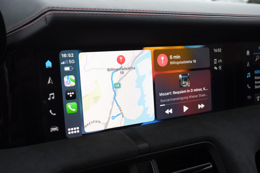Man kan ladda med upp till 270 kW om man hittar en laddare som stöder så hög effekt, men som vi har sett förut är laddningseffekten och laddningskurvan sällan optimal. Med ett förvärmt batteri – temperaturen visas i instrumentpanelen och ska ligga mellan 30 och 35 grader – hävdar Porsche att man ska kunna ladda från 5 till 80 procent på drygt 22 minuter.