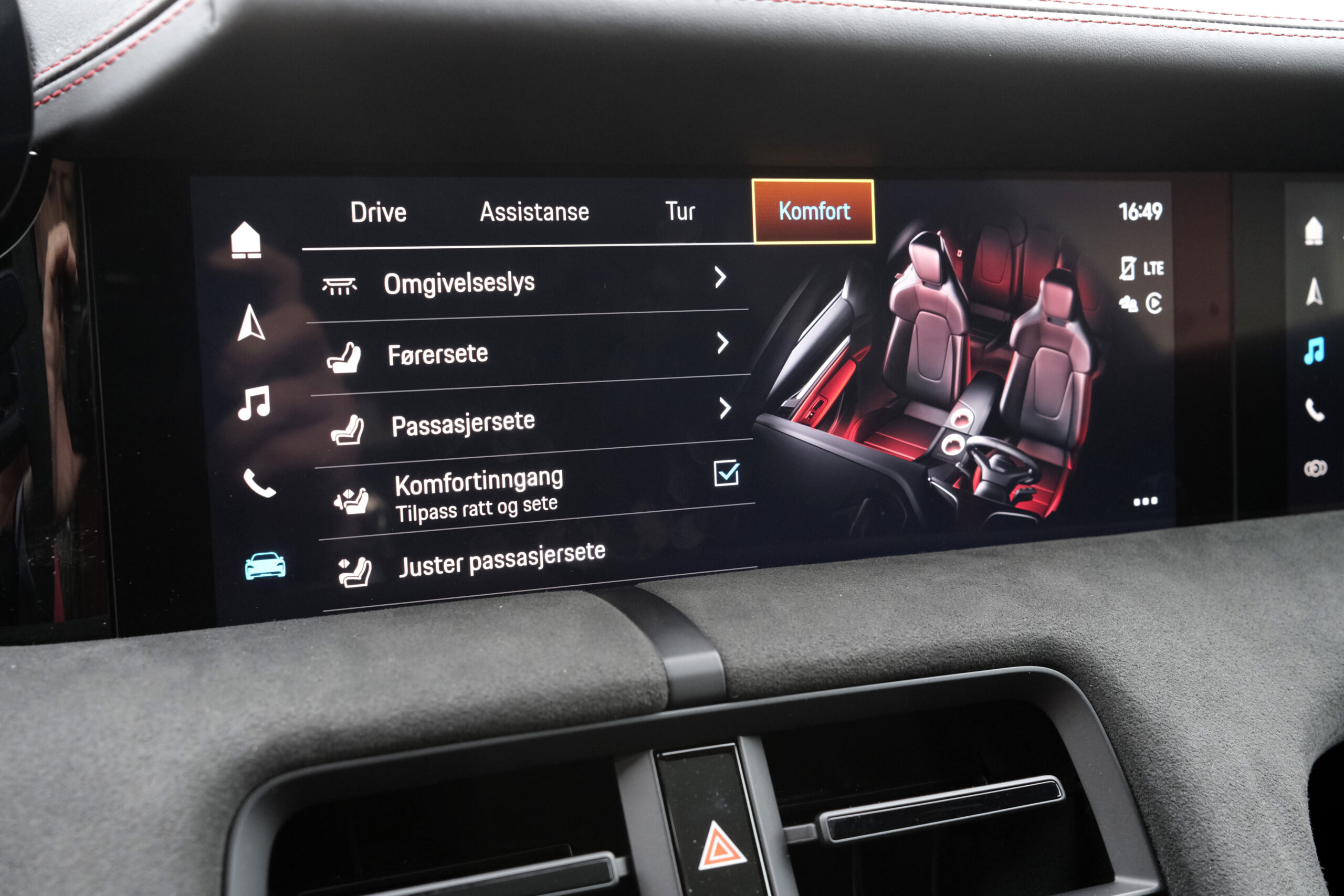 De fasta sportstolarna med justerbart sidostöd – och kan justera det allra mesta – håller mig fast stadigt i kurvorna. De röda säkerhetsbältena har inte reagerat på körningen ännu och har därför inte stramat åt bältena sedan jag körde hemifrån. Bilen är våldsamt snabb, men att köra den är helt odramatiskt och jag misstänker att det här måste vara snudd på det helt perfekta valet i Taycan-serien.