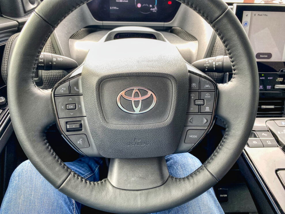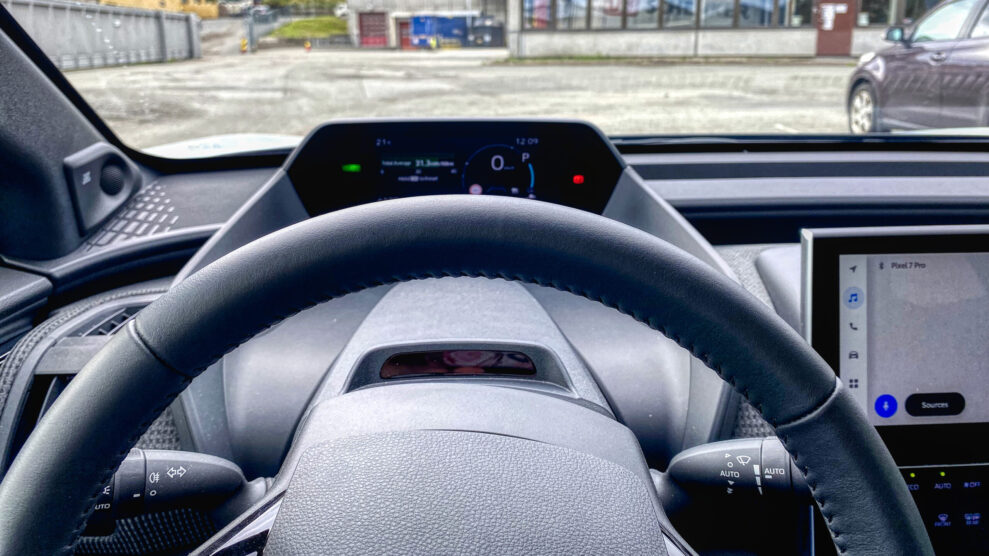 För att vara världens största biltillverkare är det lite förvånande hur lite innovation det finns att se när man bekantar sig med förarmiljön i bZ4X. Det är helt uppenbart att Toyota inte vill förvirra kunder som kommer från förbränningsbilar.
