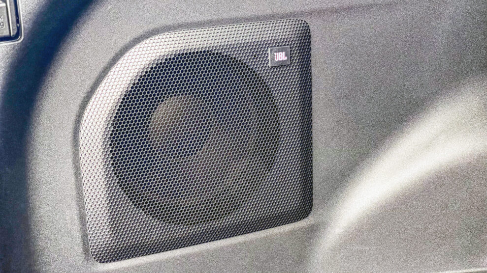 Ljudsystemet levereras av JBL och har nio högtalare inklusive en 6,5-tums subwoofer i bagageutrymmet. Tyvärr är jag inte helt övertygad. Ljudet är ganska platt, utan särskilt mycket luft i diskanten. Eller särskilt mycket tryck i basen, för den delen. Man kan justera tonkontrollerna lite, men jag lyckas aldrig få ett ljud som jag är helt nöjd med. Det är långt upp till B&O-systemet i Mustang Mach-E och även premiumsystemet i VW ID.4 och ID.5 är bättre än detta.