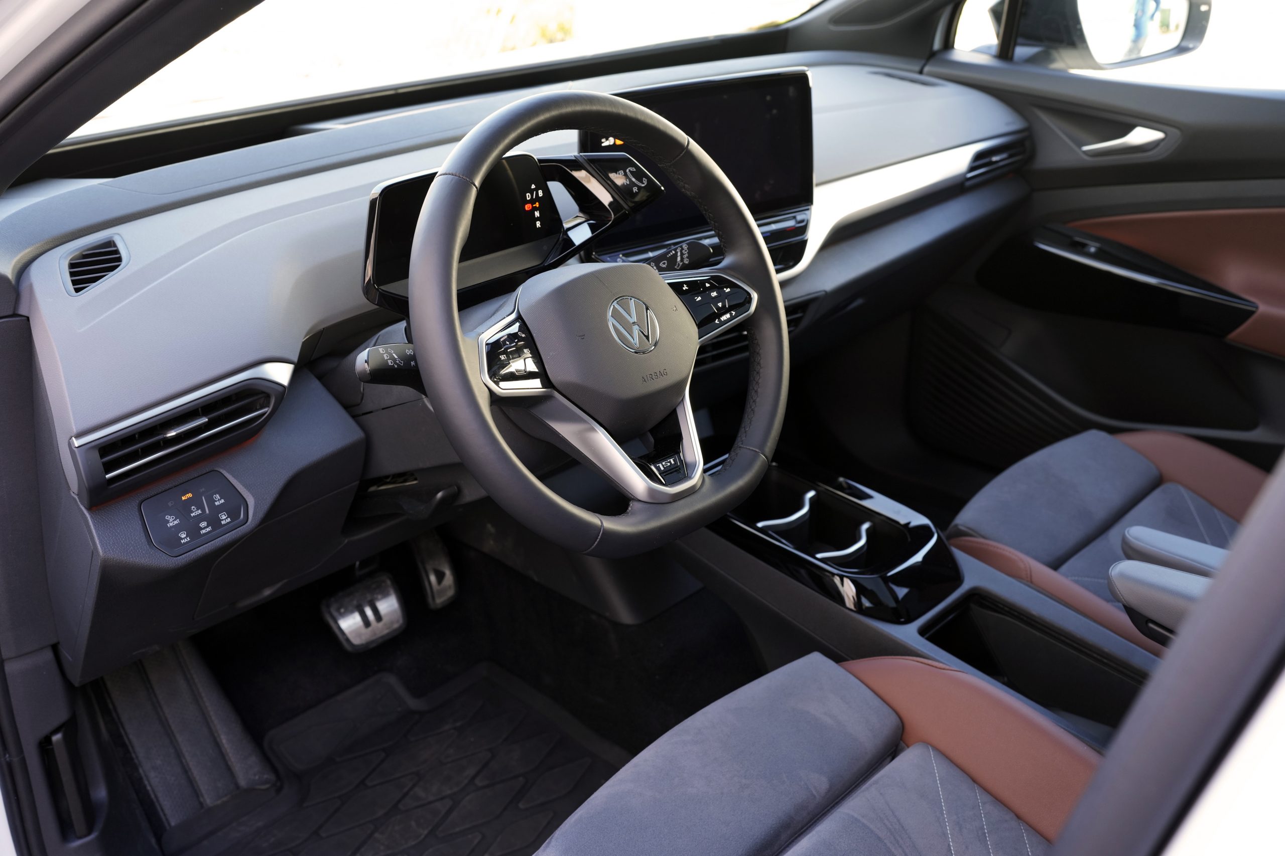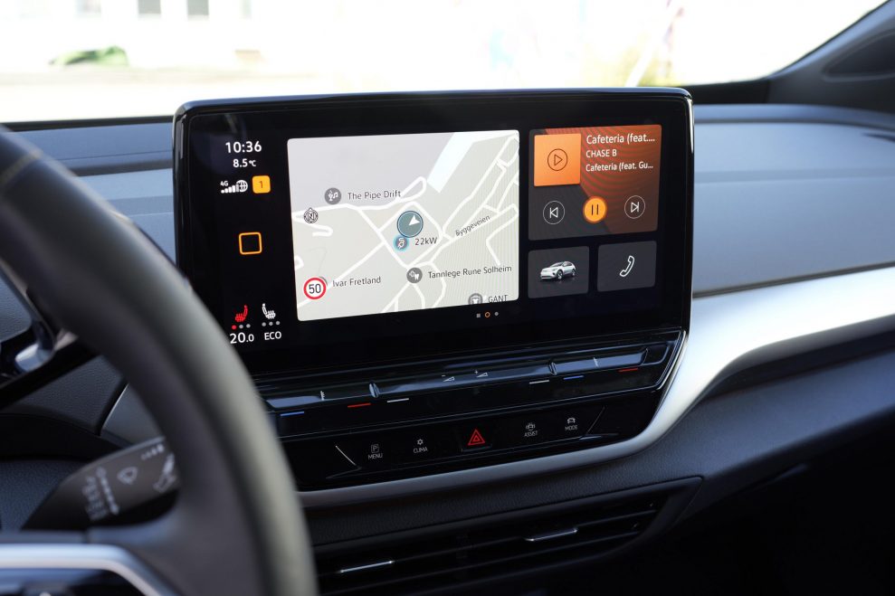 ID-familjen har Volkswagens nya infotainment-system, som vi känner igen från lillebror ID.3. Det har en 10-tums pekskärm (12-tums i Max-versionen) som styr de flesta funktioner, plus en kördisplay monterad på ratten. ID.4 kan också utrustas med en Head-Up Display som projicerar information i vindrutan, vilket är praktiskt för att hålla ögonen på vägen.