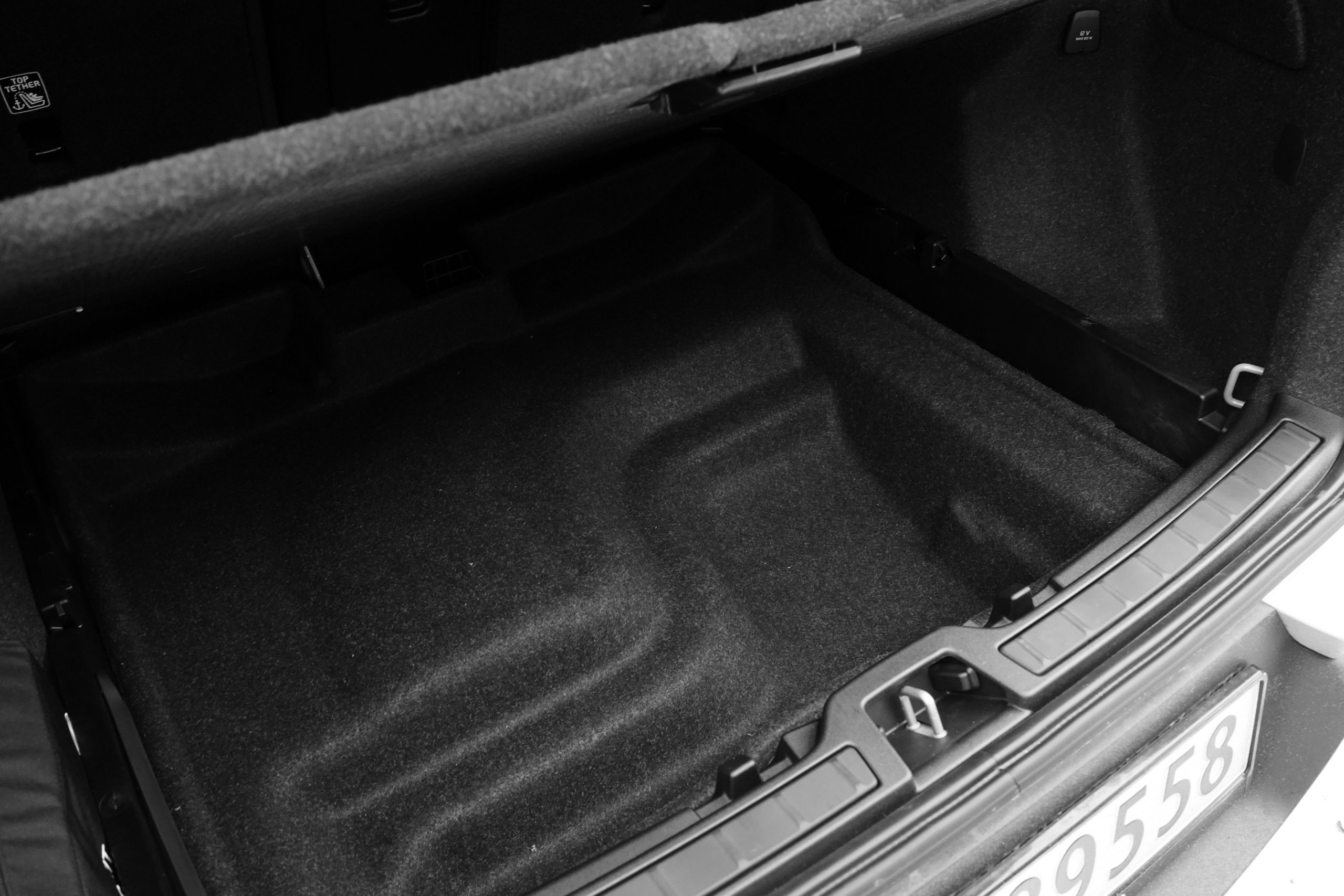 Det finns inte våldsamt mycket lastutrymme i en XC40, men den elektriska versionen har åtminstone ett extra lastutrymme fram. I ”frunken”, som den kallas, finns det plats för exempelvis laddkablar i det vattentäta utrymmet på 31 liter. Bak lastar man upp till 414 liter, det inkluderar det lilla utrymmet under golvet. Fäller man ner baksätena ökar volymen till 1 290 liter.