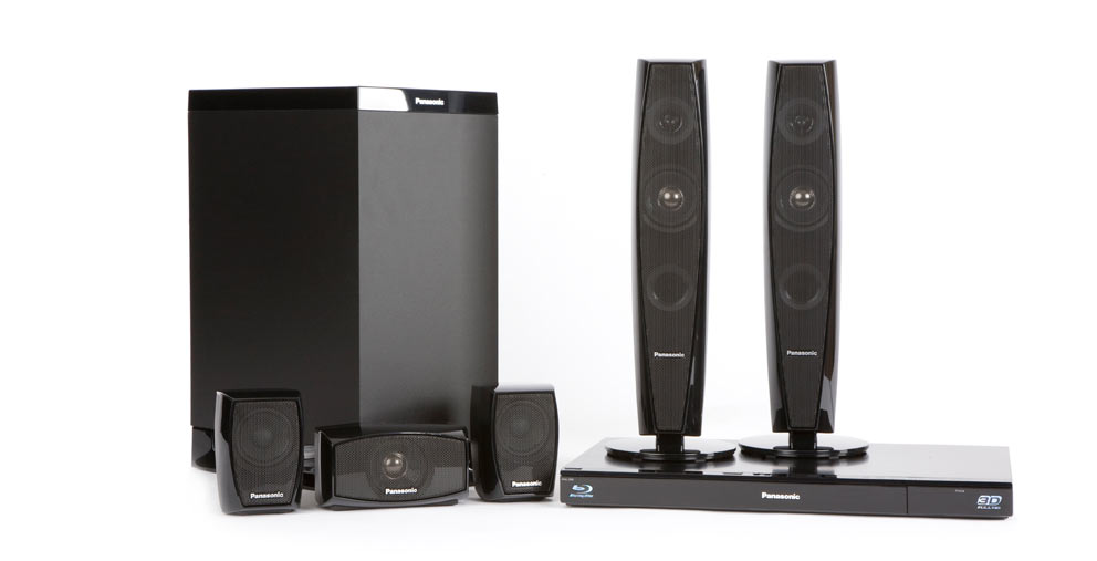 Här verkar allt man behöver finnas. En Blu-ray-spelare som kan visa 3D-film (och dessutom omvandla 2D till 3D) sitter i samma låda som en förstärkare som lämnar ström till samtliga högtalare inklusive bashögtalaren (subbasen). Fronthögtalarna är lite större än bakhögtalarna eftersom det mesta av ljudbilden kommer framifrån. Den lilla centerhögtalaren kan ställas ovanför eller under TV:n.