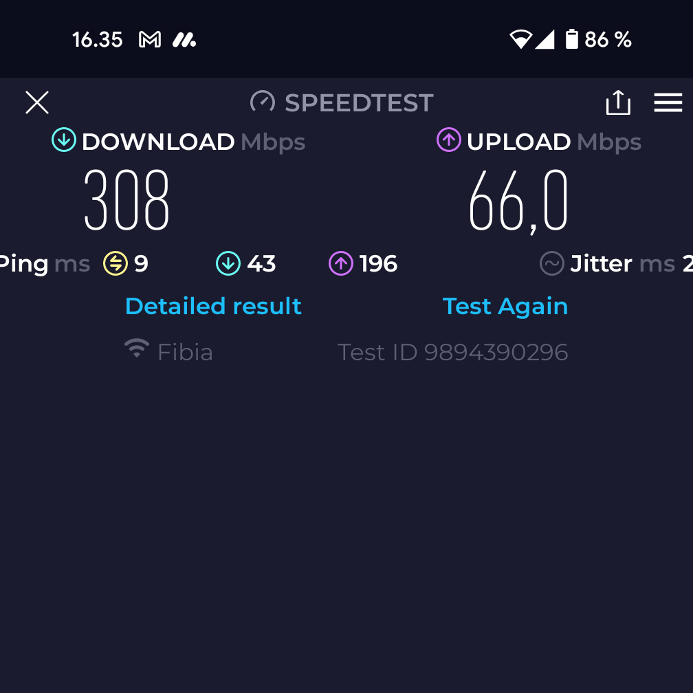 I lägenhetens bortersta del, i sovrummet som ligger ca 10 meter från närmaste router och bakom betongväggar, sjönk nedladdningshastigheten till 308 Mbit/s. Det är betydligt långsammare, men fortfarande fullt användbart.