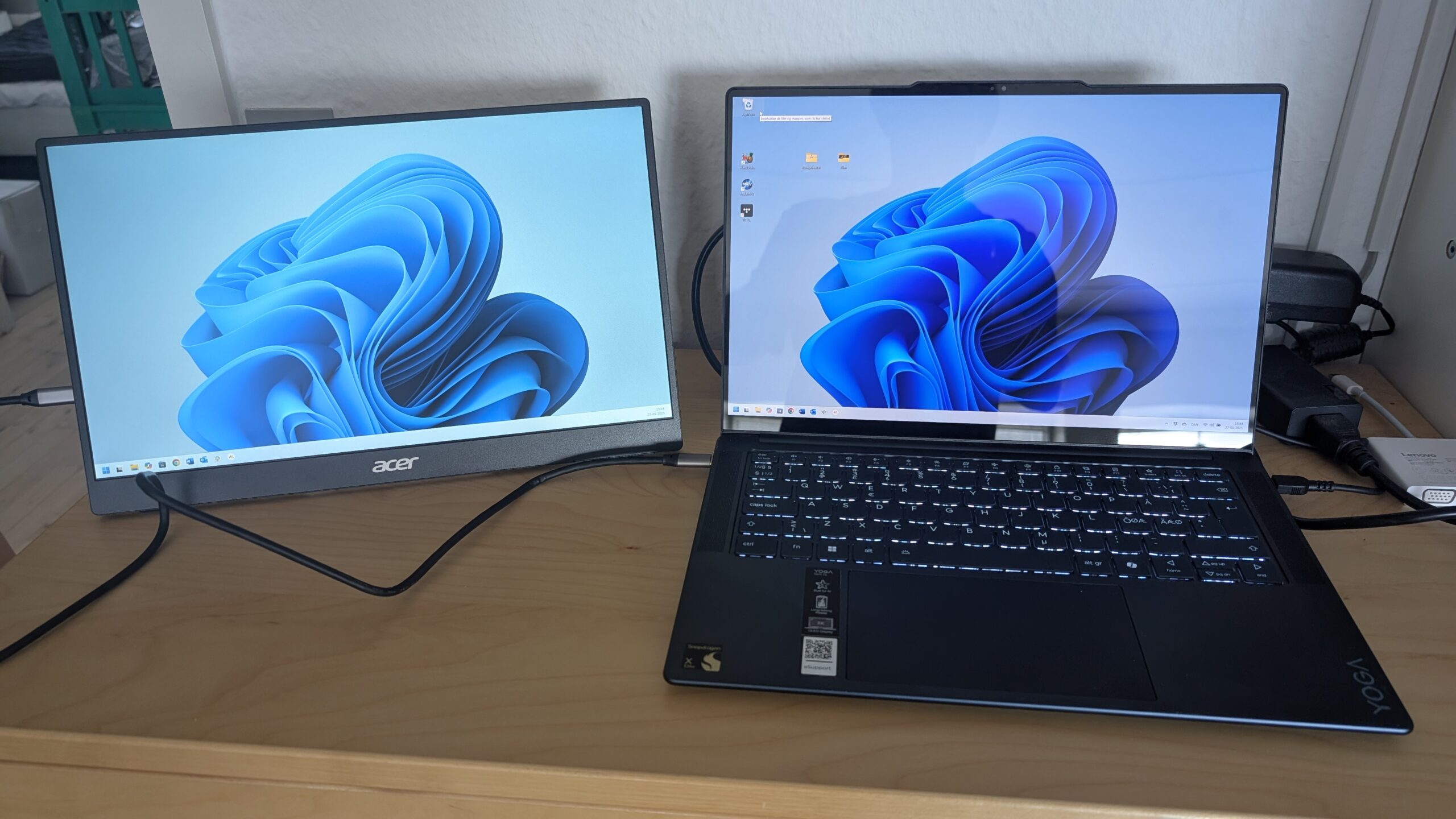 Reservationerna försvinner dock när skärmen ställs bredvid den bärbara datorn och man kan börja dra över programfönster till den. Det är nästan som hemma!