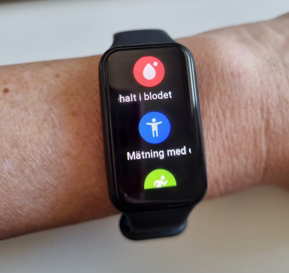 Armbandet är mjukt, smidigt och följsamt och jag märker knappt att jag har det på mig. Jag känner mig lite tudelad när det kommer till skärmen. Å ena sidan är det bra att den är stor eftersom det gör den tydligare för mig som är 50+ men å andra sidan är den lite väl stor för att helt smidigt landa in i armbandskategorin.
